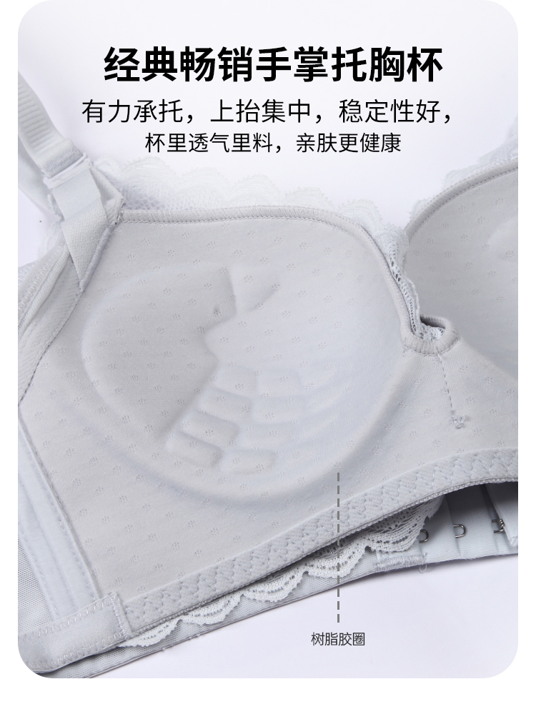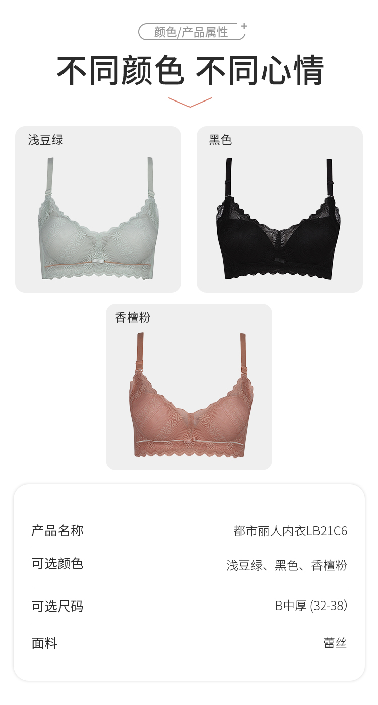都市丽人B杯常规内衣聚拢升杯中厚蕾丝三排扣树脂胶圈3/4杯常规文胸LB21C6