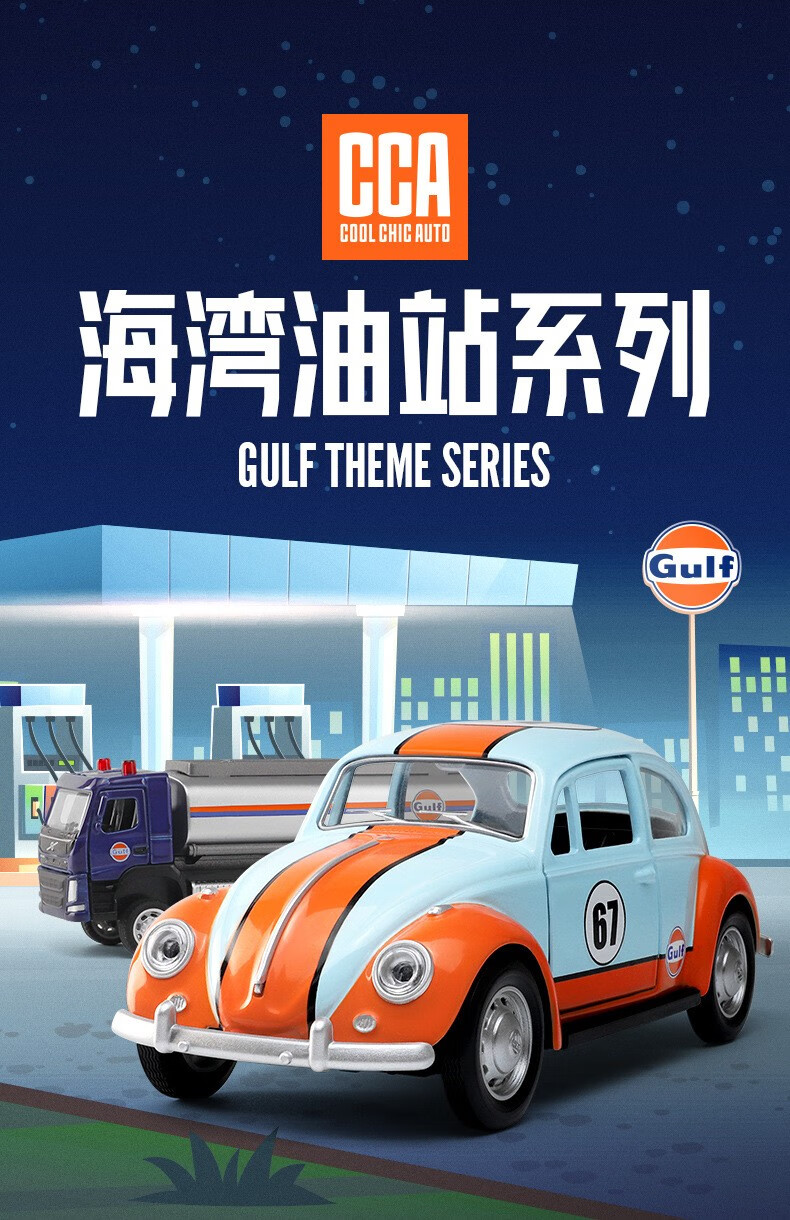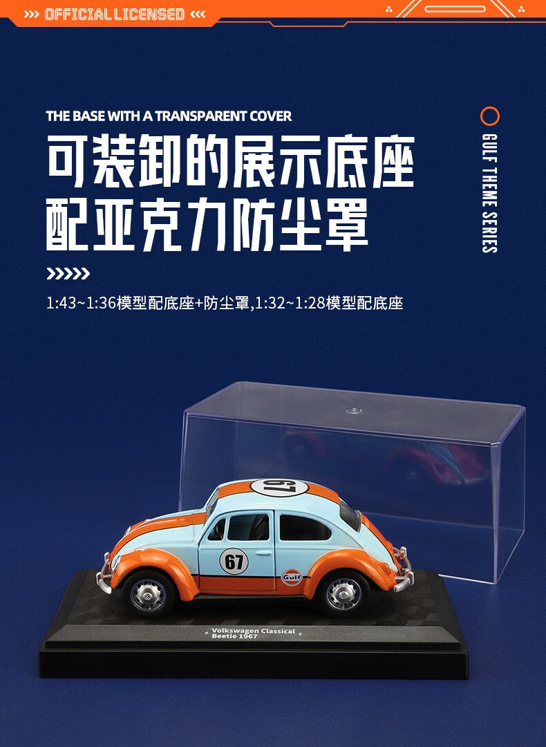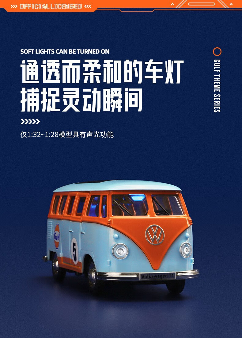 联名授权款合金汽车模型回力声光赛车跑车巴士工程车玩具1:36大众甲壳虫经典款67053F
