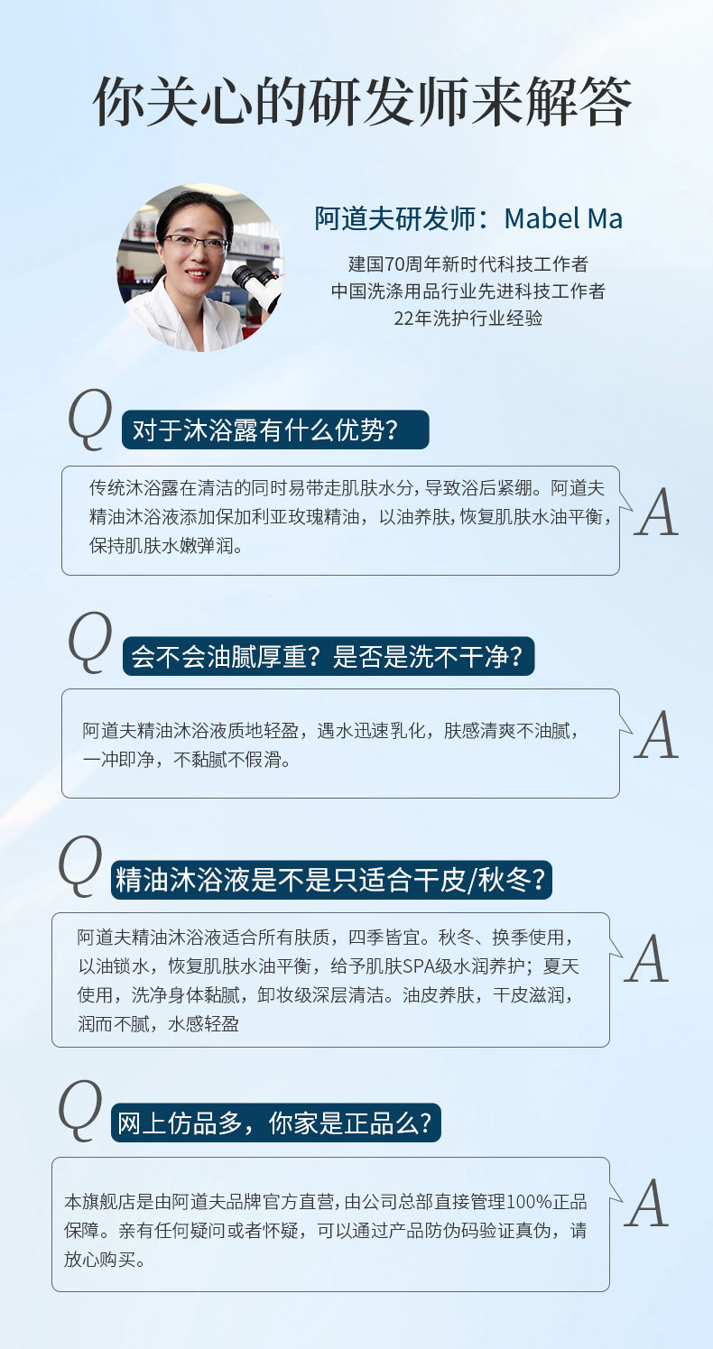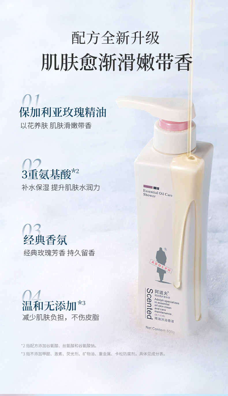 【自营】阿道夫精油香护理专研精油沐浴香液(魅力经典)800g