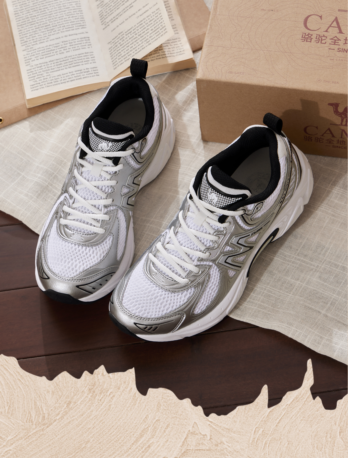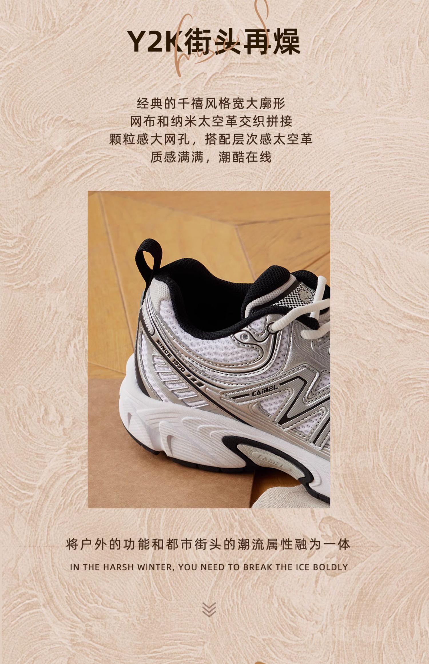 骆驼慢跑鞋男士2025春季新款复古时尚防滑舒适透气百搭运动鞋女 K15B097025_K25B097018