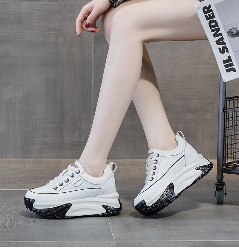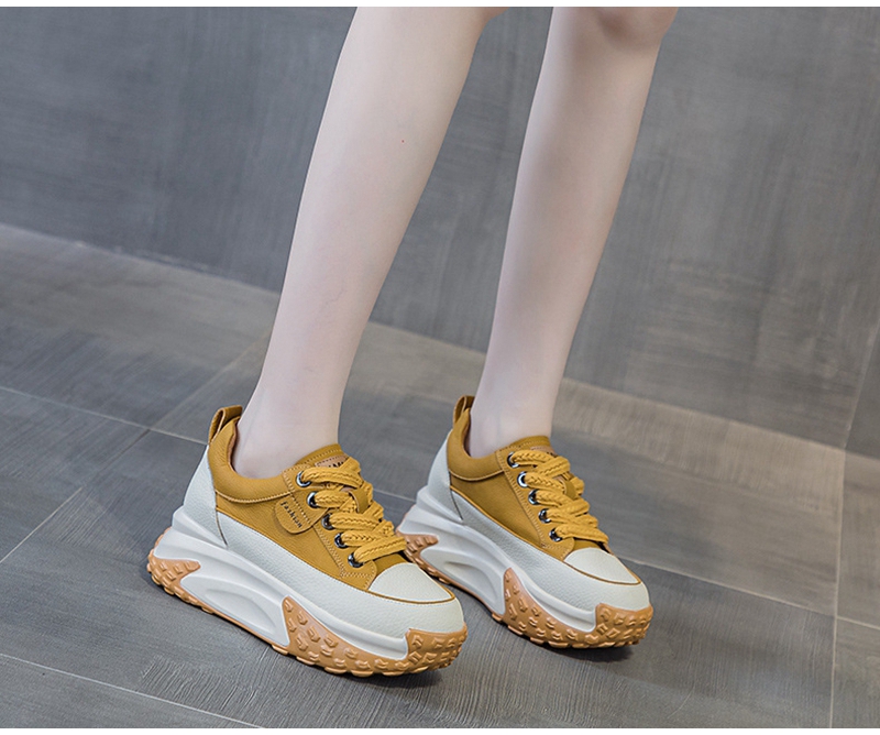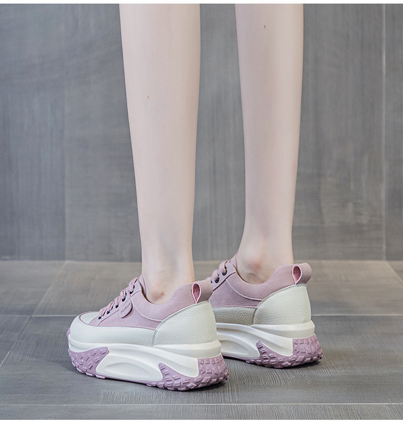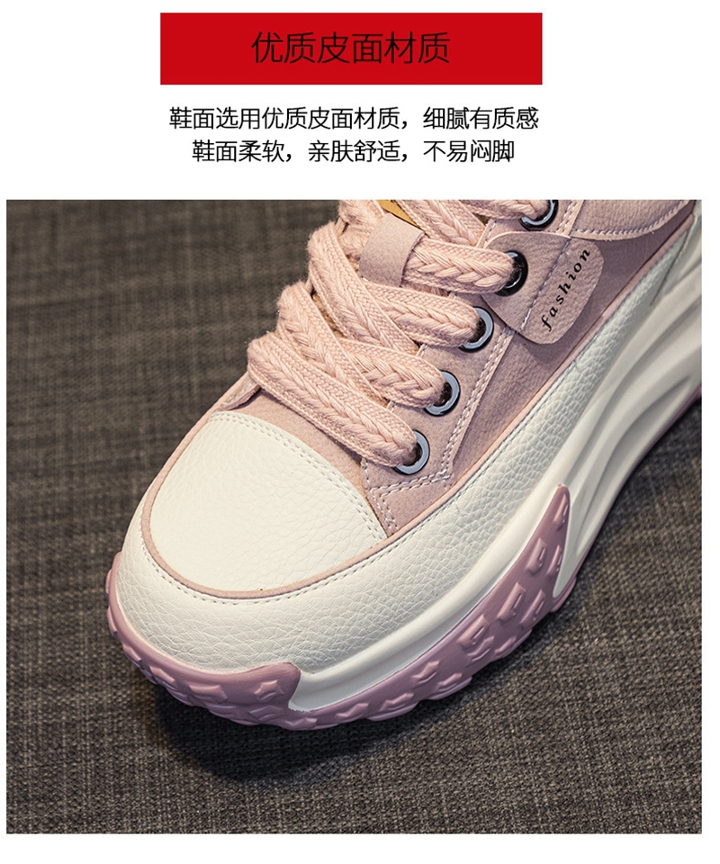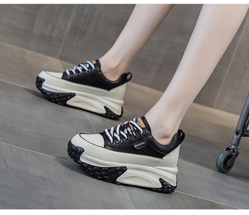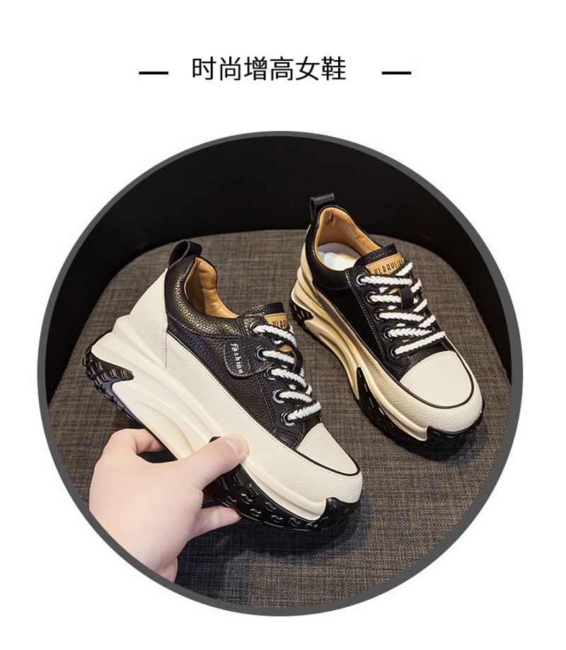 时尚内增高圆头低帮前绑带厚底平底高跟老爹鞋