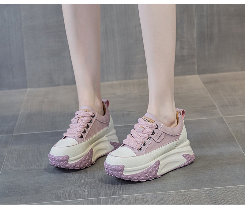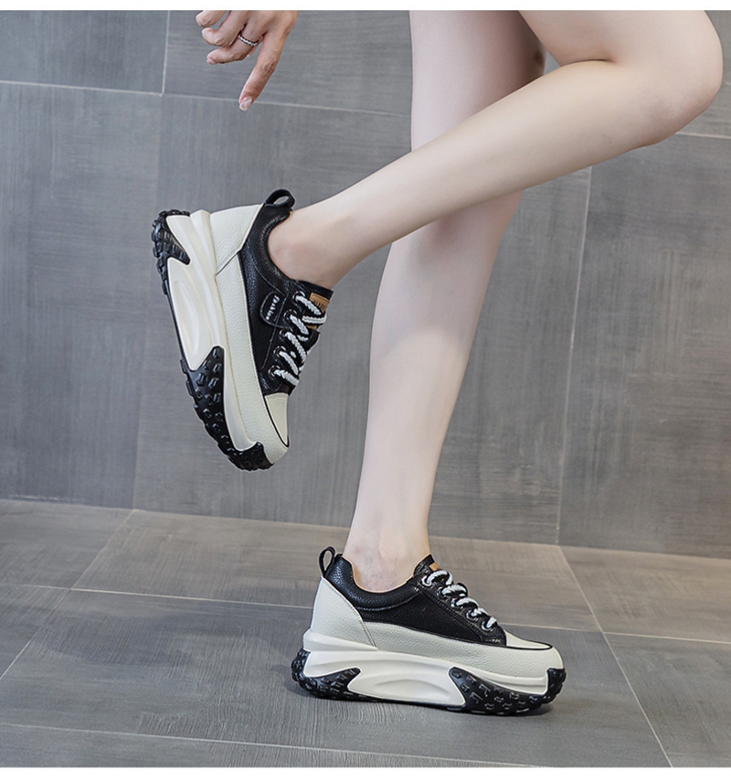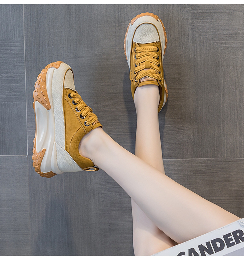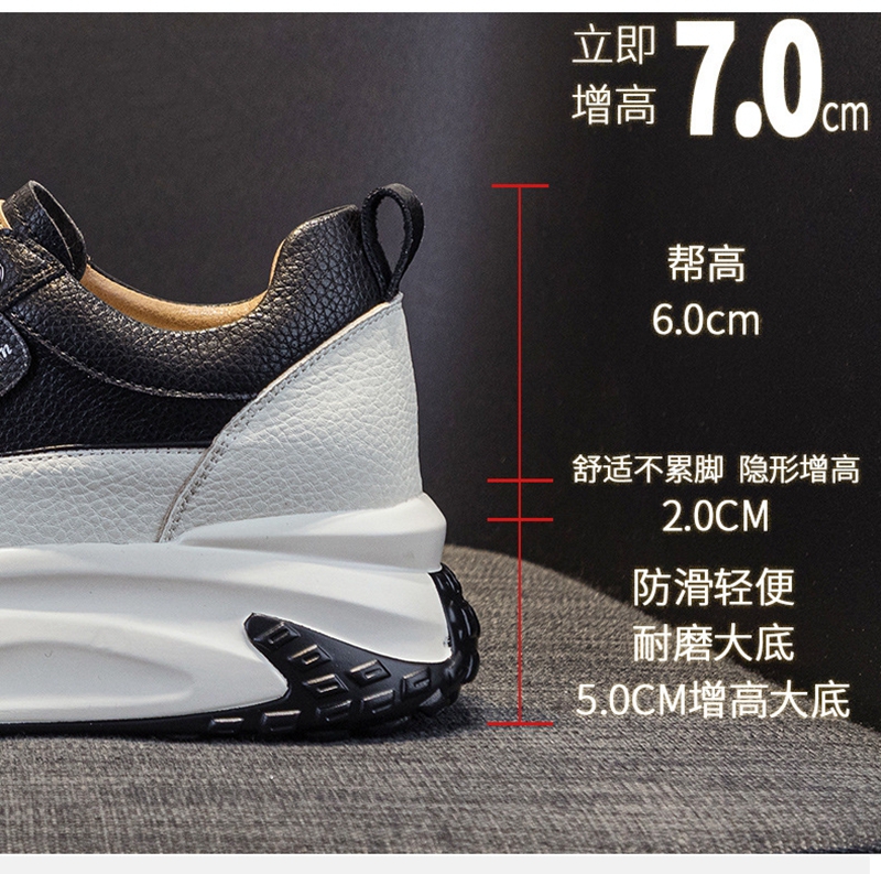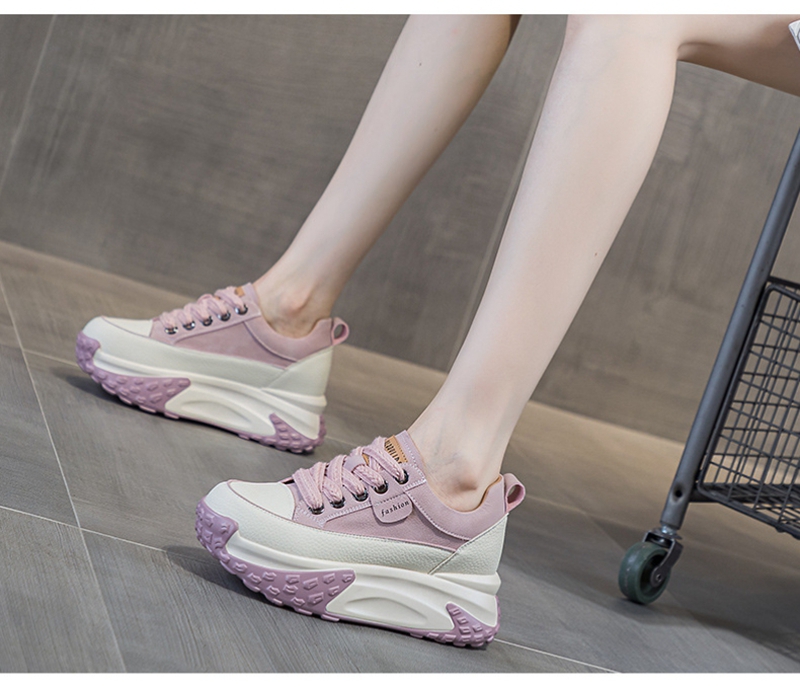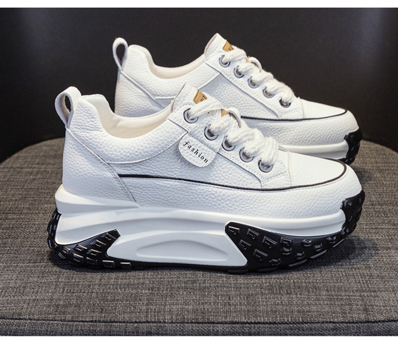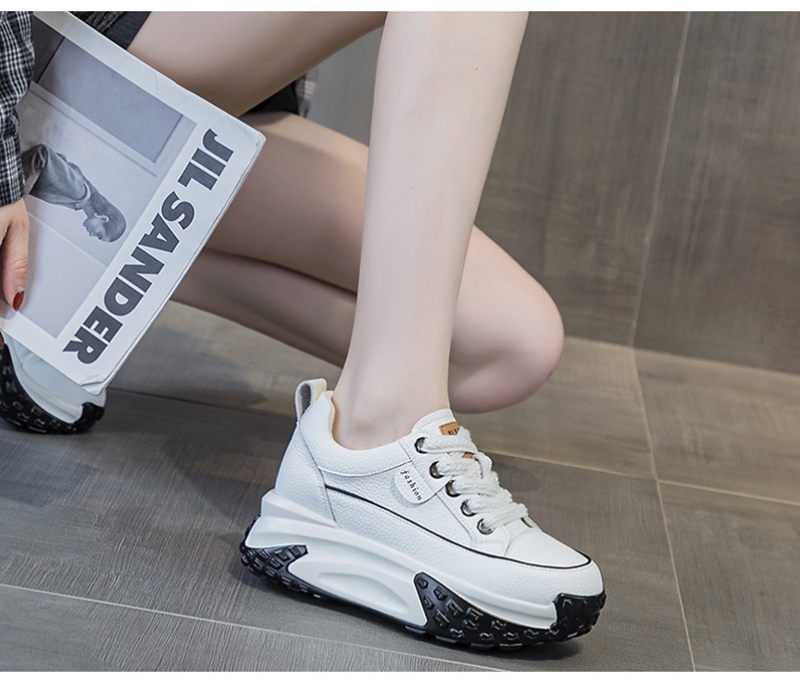 时尚内增高圆头低帮前绑带厚底平底高跟老爹鞋