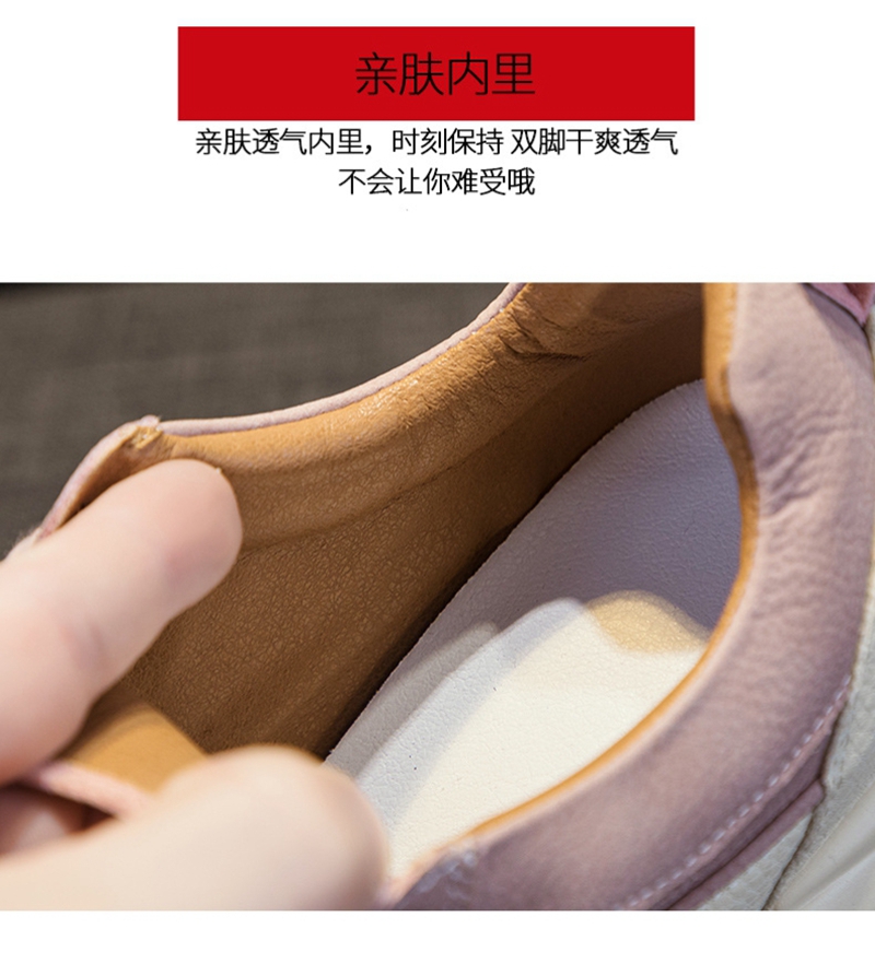 舒适走路不累 圆头绑带厚底牛皮休闲板鞋