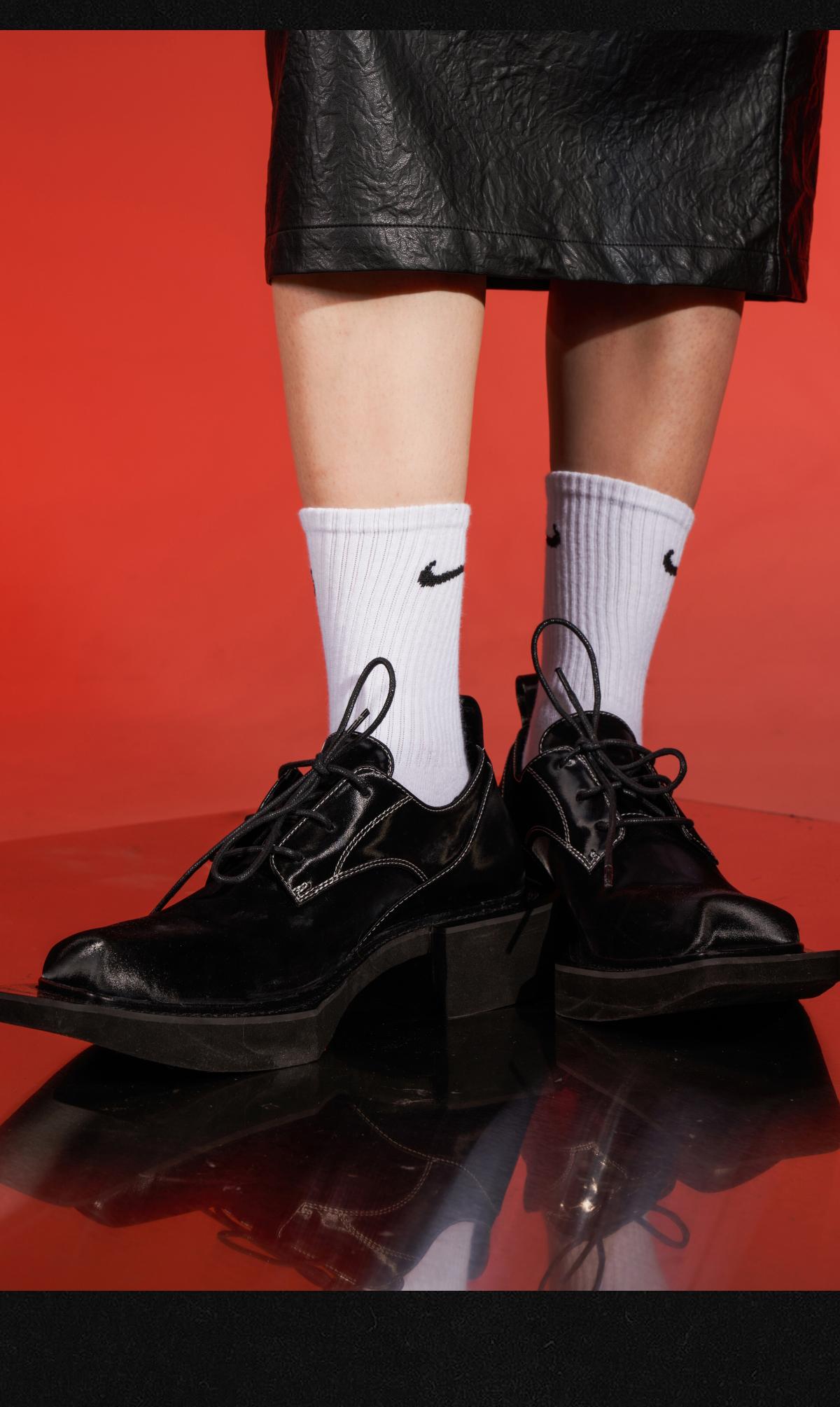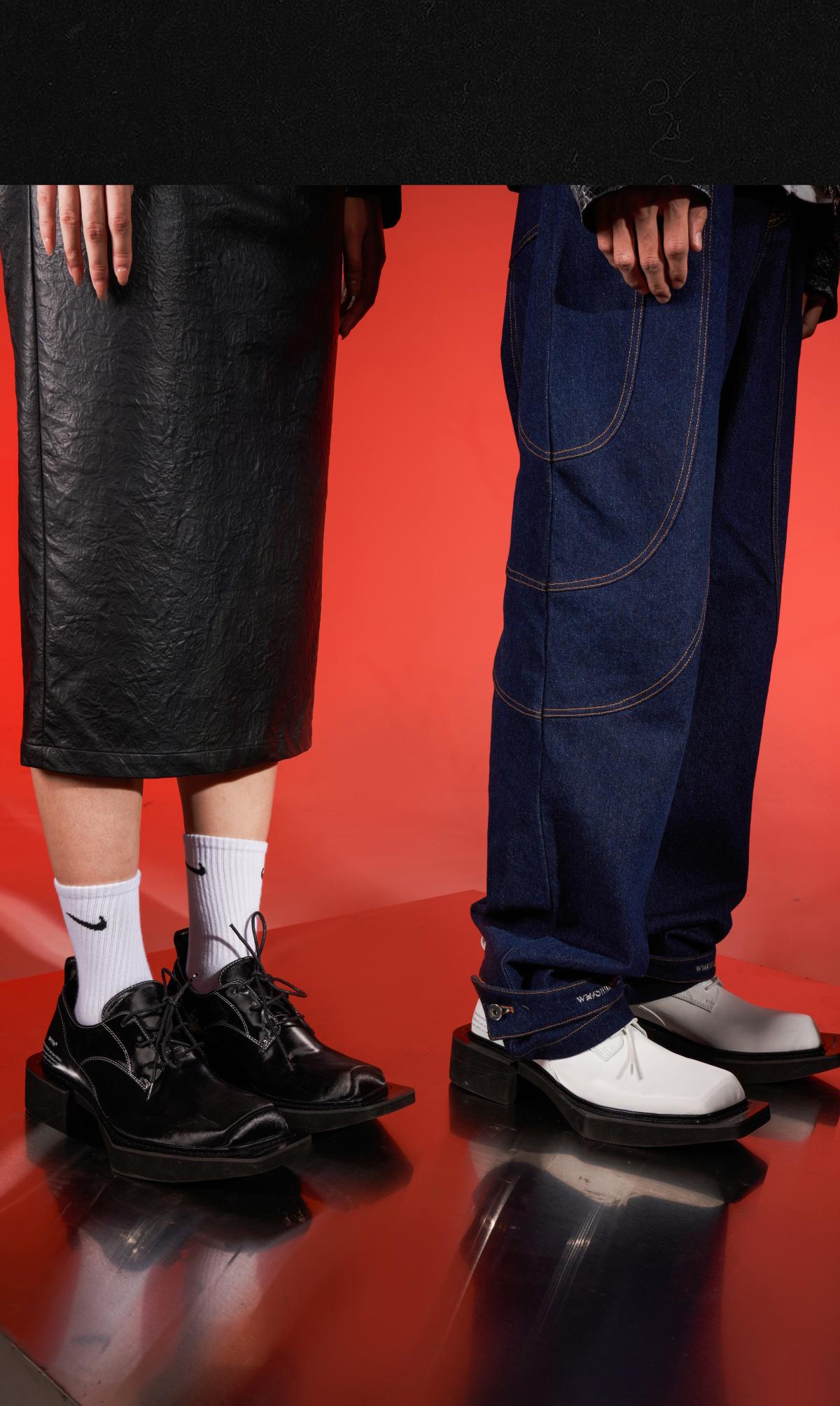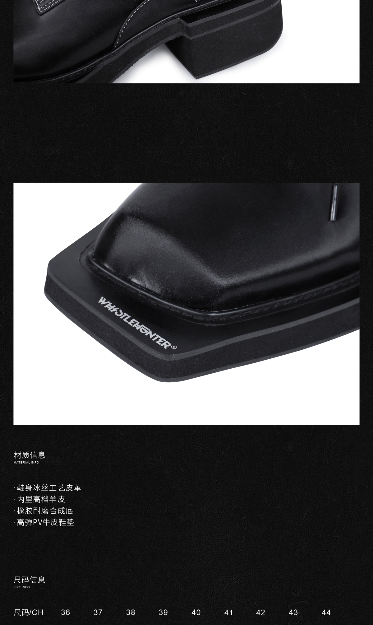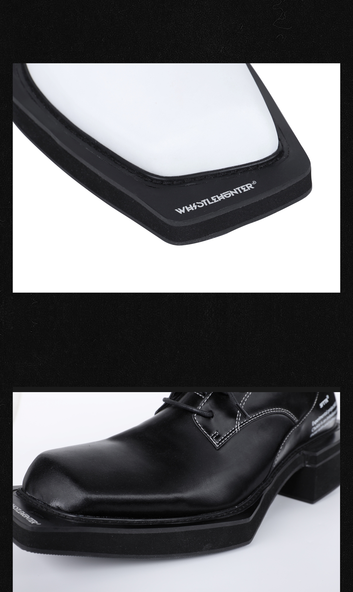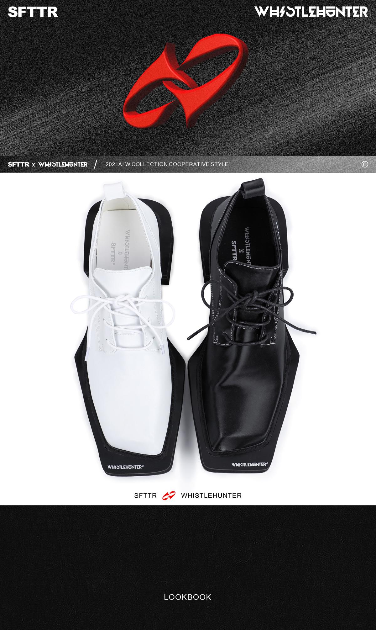 WHISTLEHUNTERxSFTTR 联名限定两色男女日常亮面增高方头休闲皮鞋