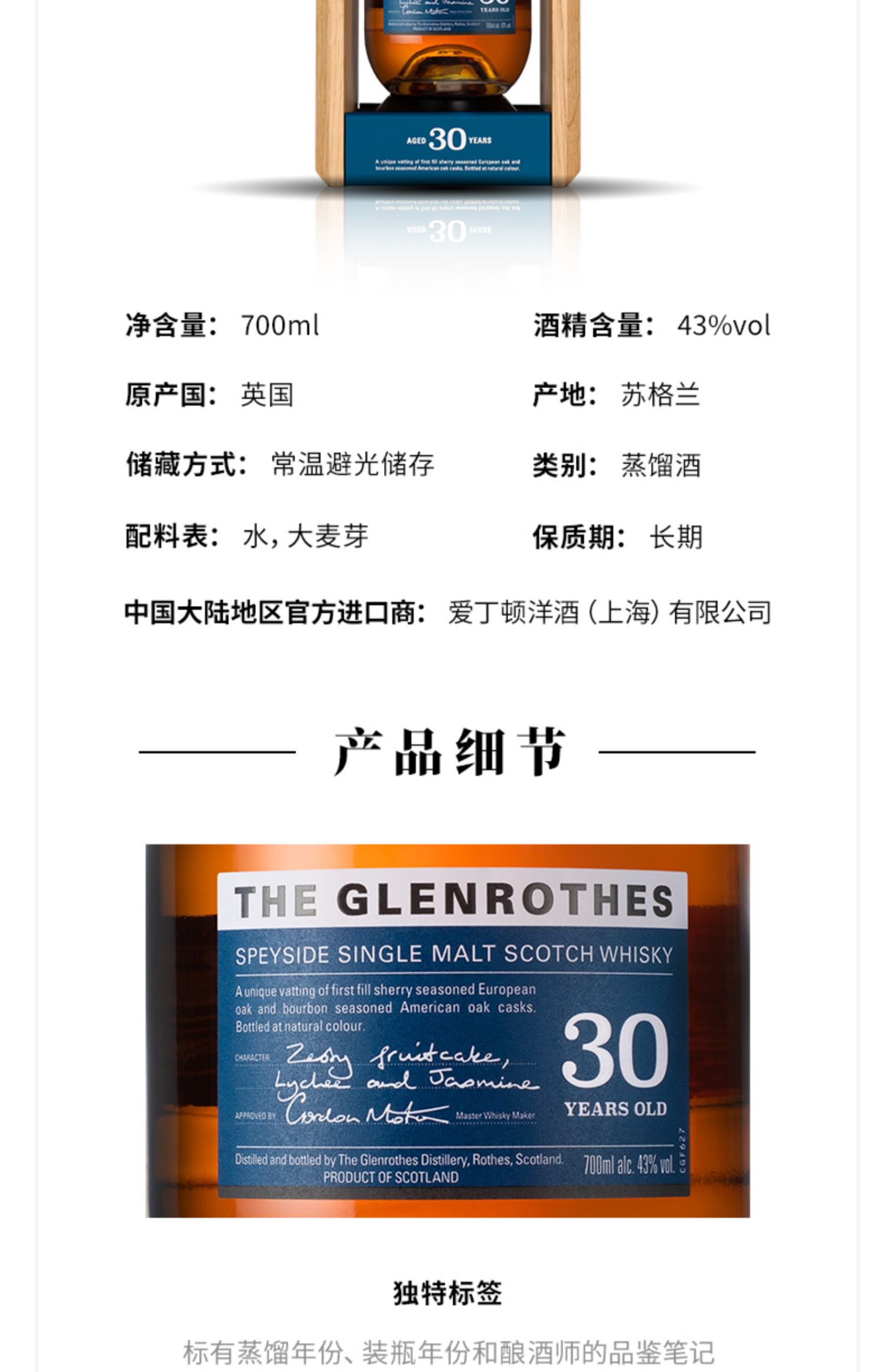 格兰露思30年 苏格兰单一麦芽威士忌700ml