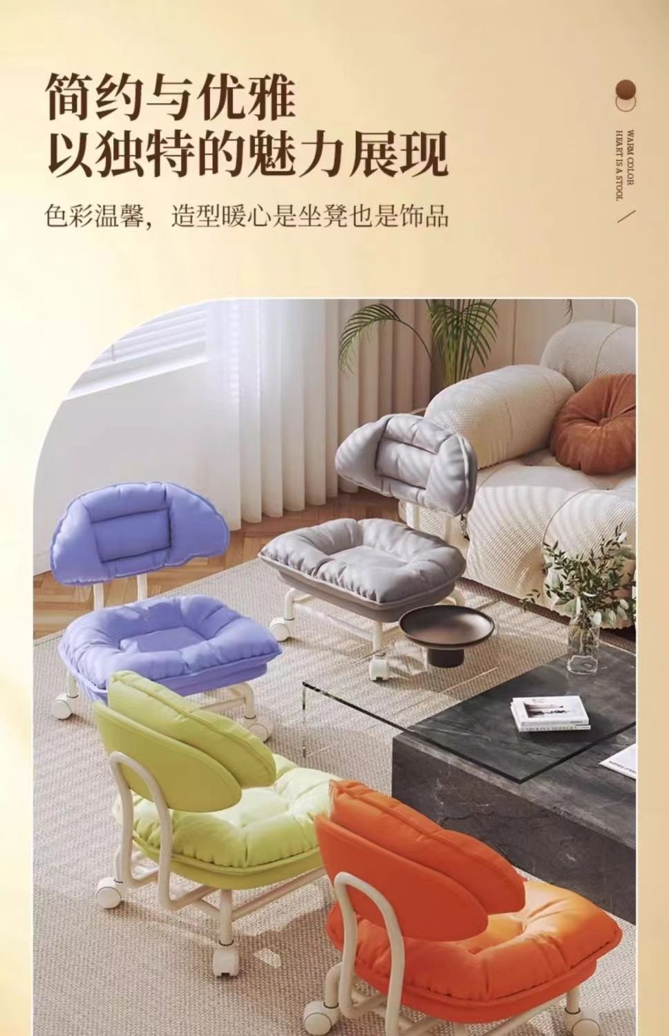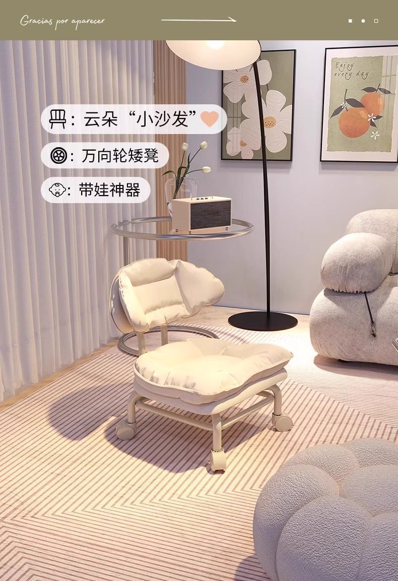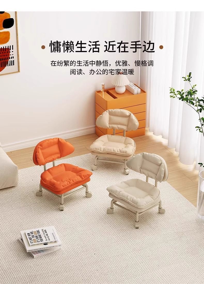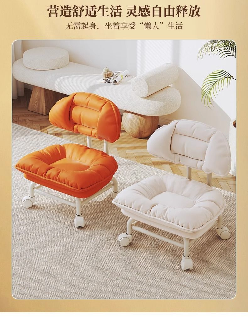 网红懒人靠背椅子家用板凳万向轮圆凳带娃神器小凳子滑轮矮凳新款新品