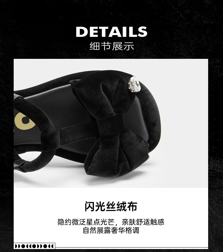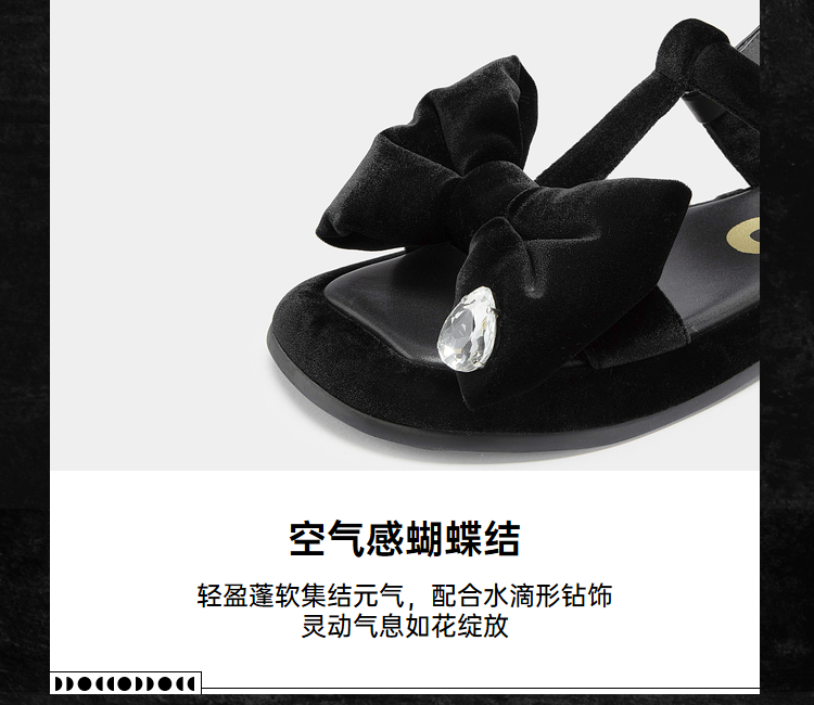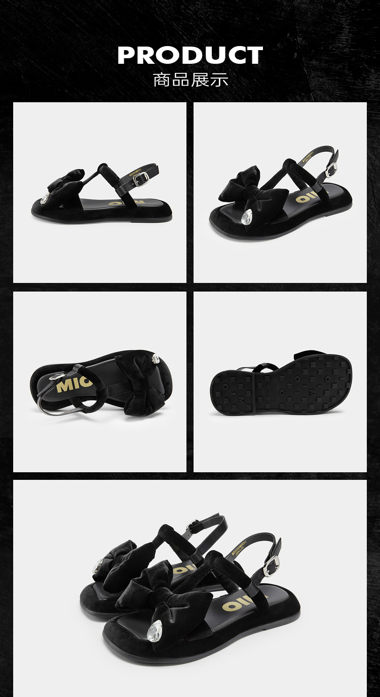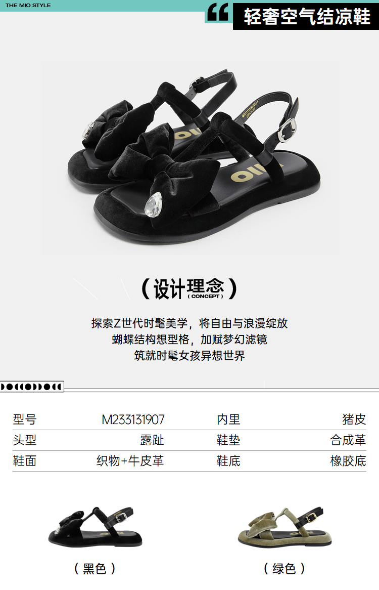 MIO米奥夏季纯色中跟凉鞋水滴钻饰蝴蝶结凉鞋女鞋M233131907