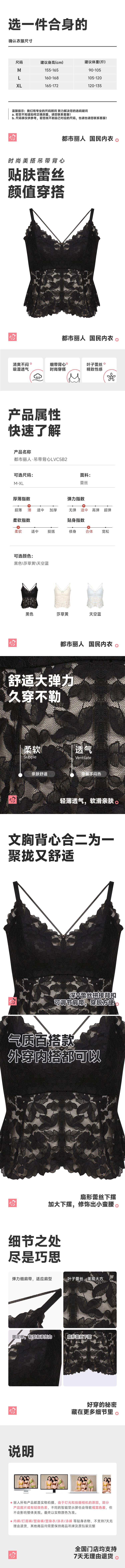 都市丽人背心无罩杯薄蕾丝背心丝质吊带背心有杯垫时尚美搭LVC5B2