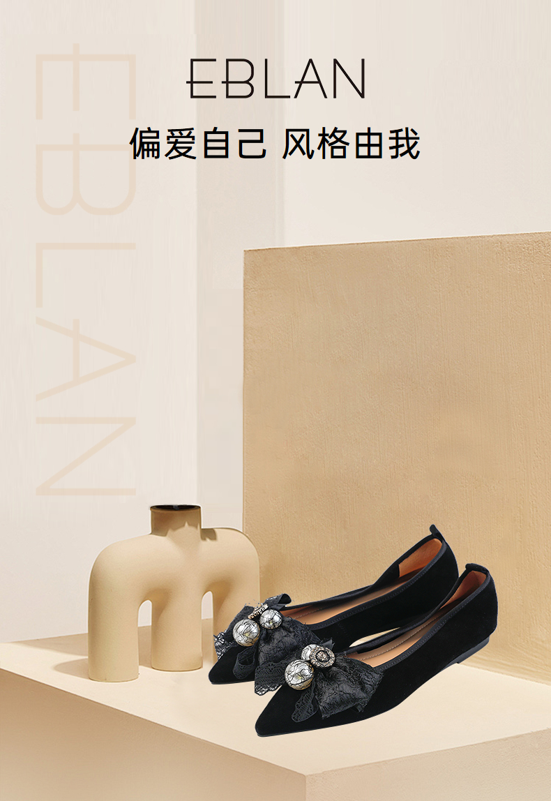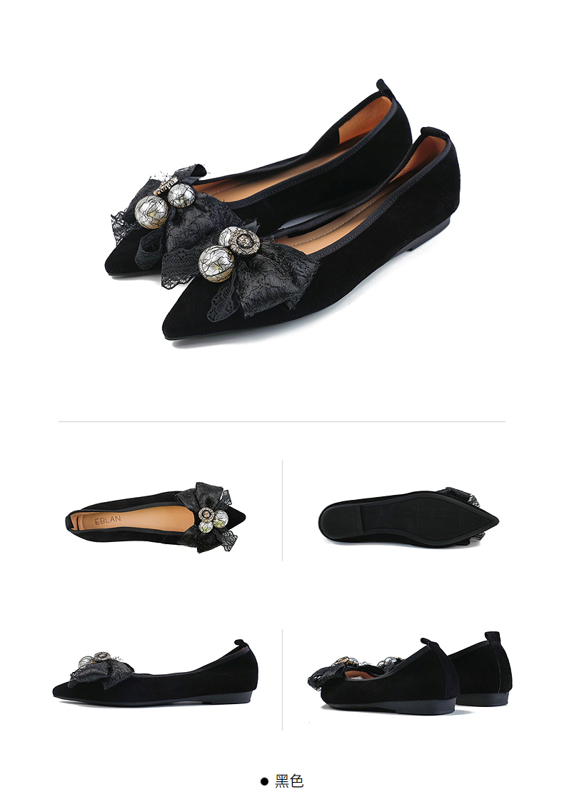 伊伴秋季尖头饰扣轻便低跟单鞋B25432663