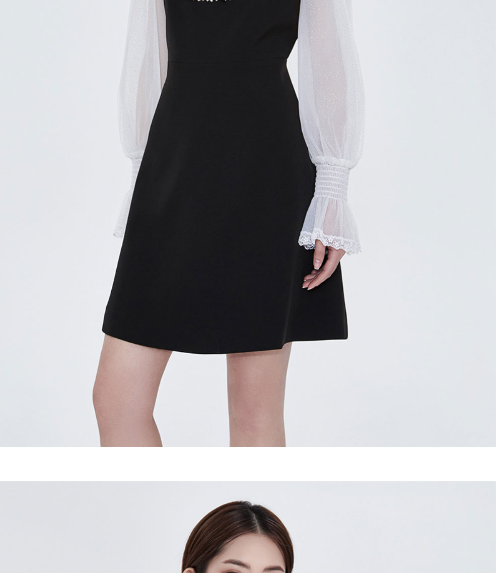FIVE PLUS2022新款女春装设计感气质连衣裙女收腰网纱假两件裙子2WA1082420