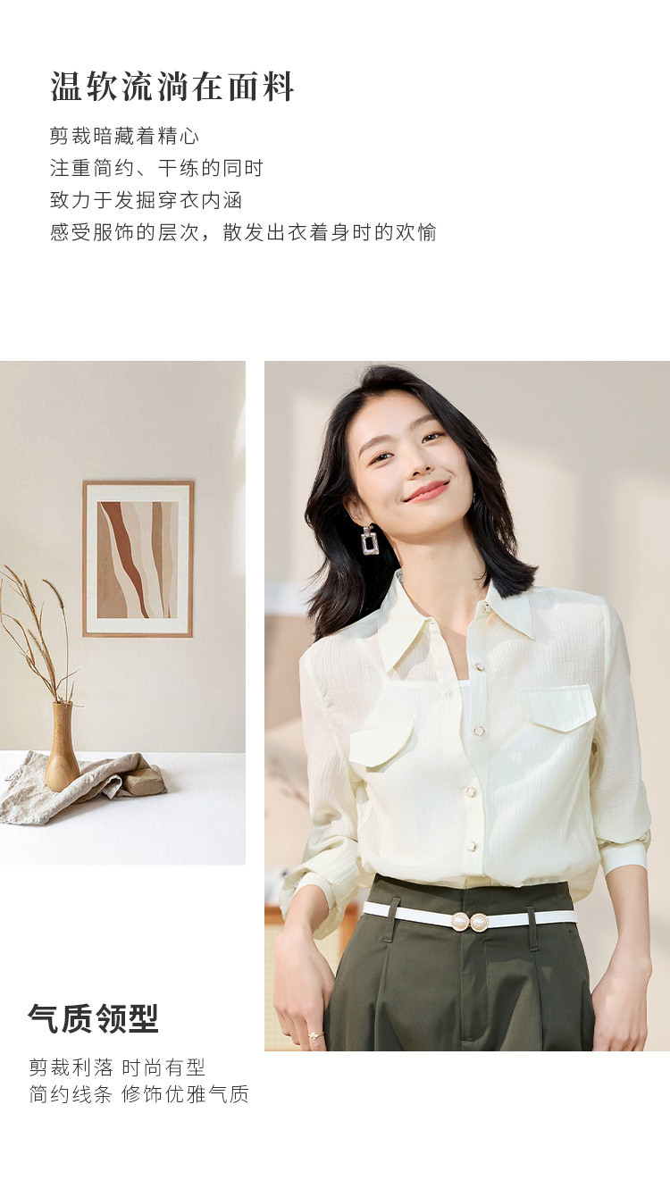 【精致百搭】罗蒙女士长袖衬衫休闲简约舒适可外穿轻薄款衬衫开衫女
