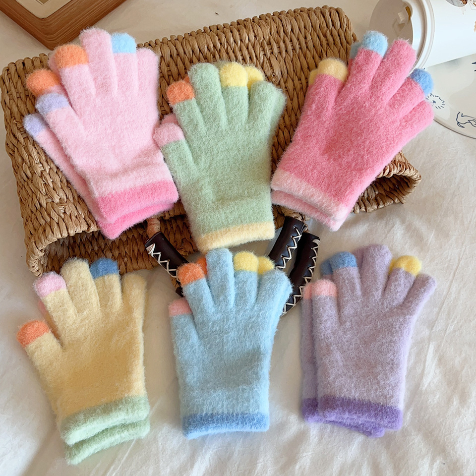 【新款】糖果马卡龙色系毛绒儿童手套 冬季防寒保暖加厚幼儿园小孩写字防冻手套