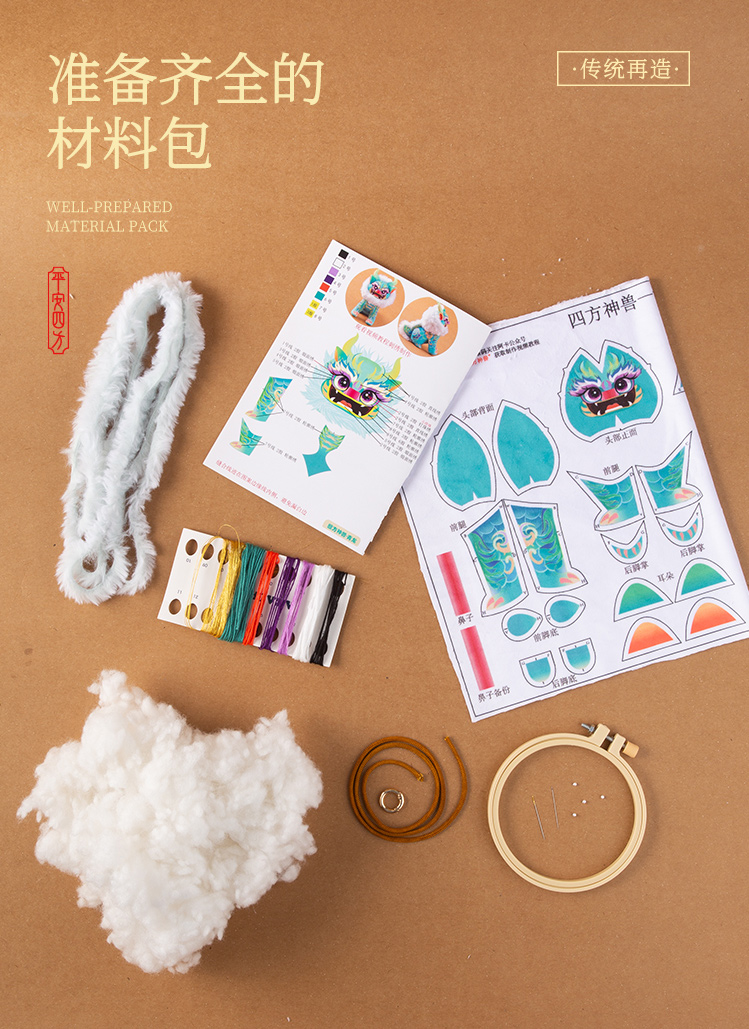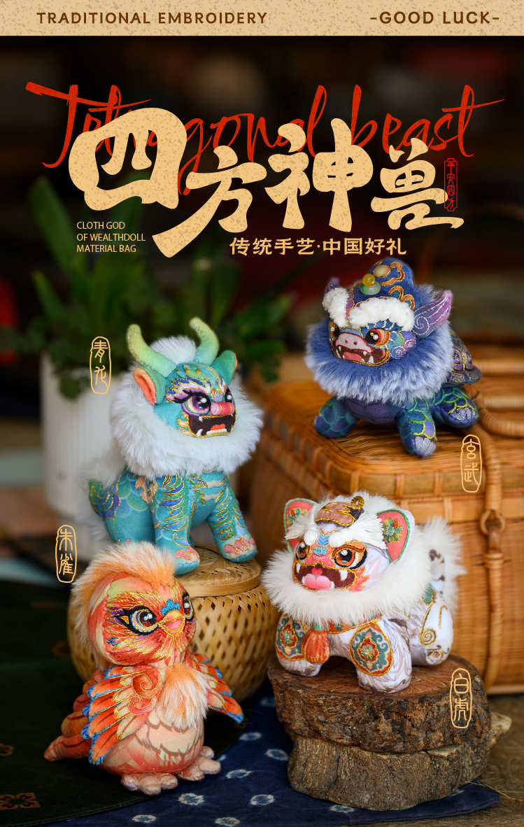 四方神兽来袭!!「青龙司春,白虎镇西,朱雀燃火,玄武守北」刺绣材料包