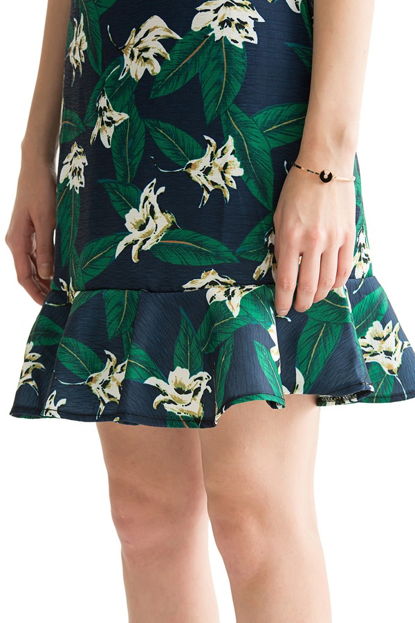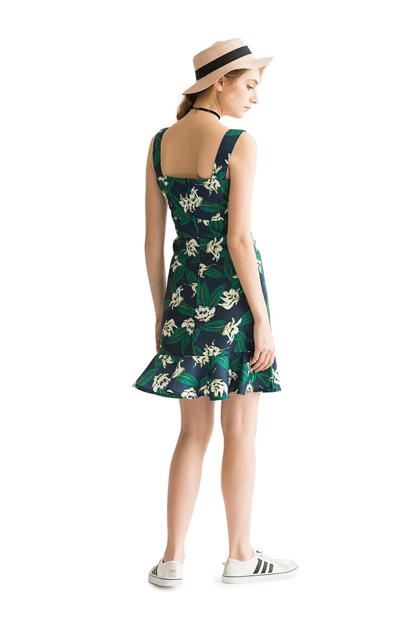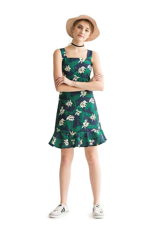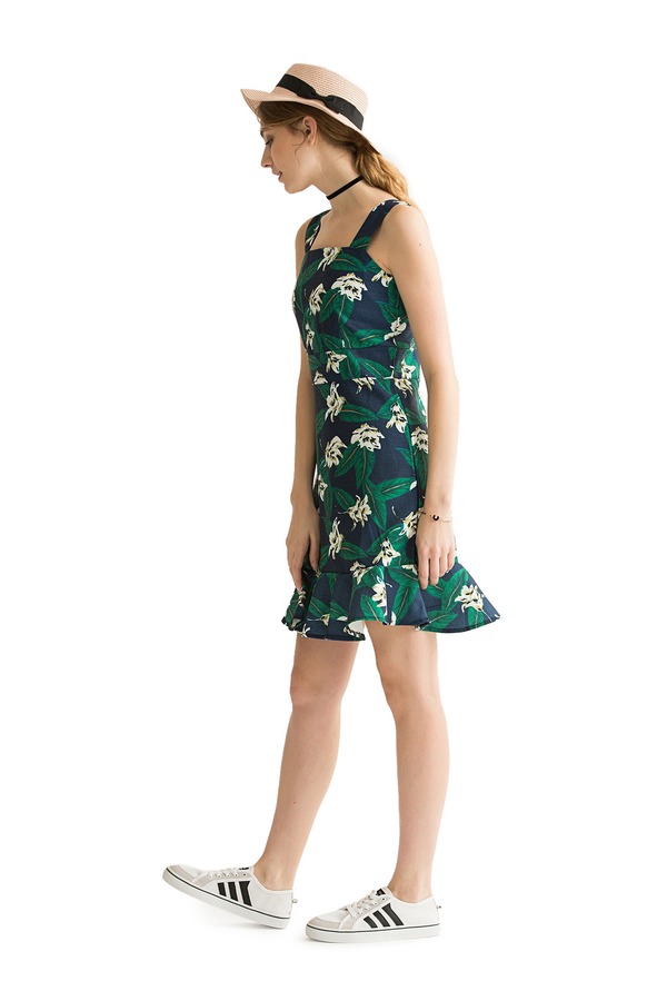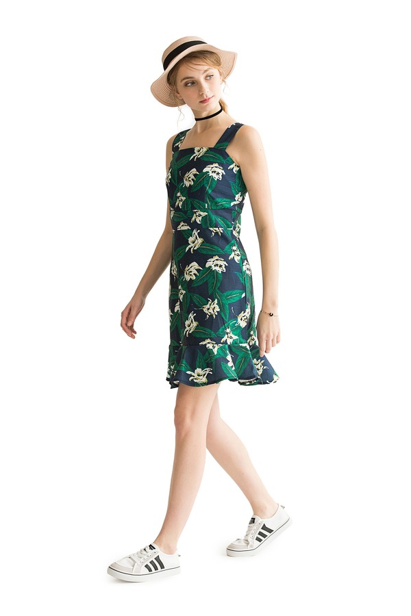AVA 花卉荷叶边饰吊带连衣裙 1604
