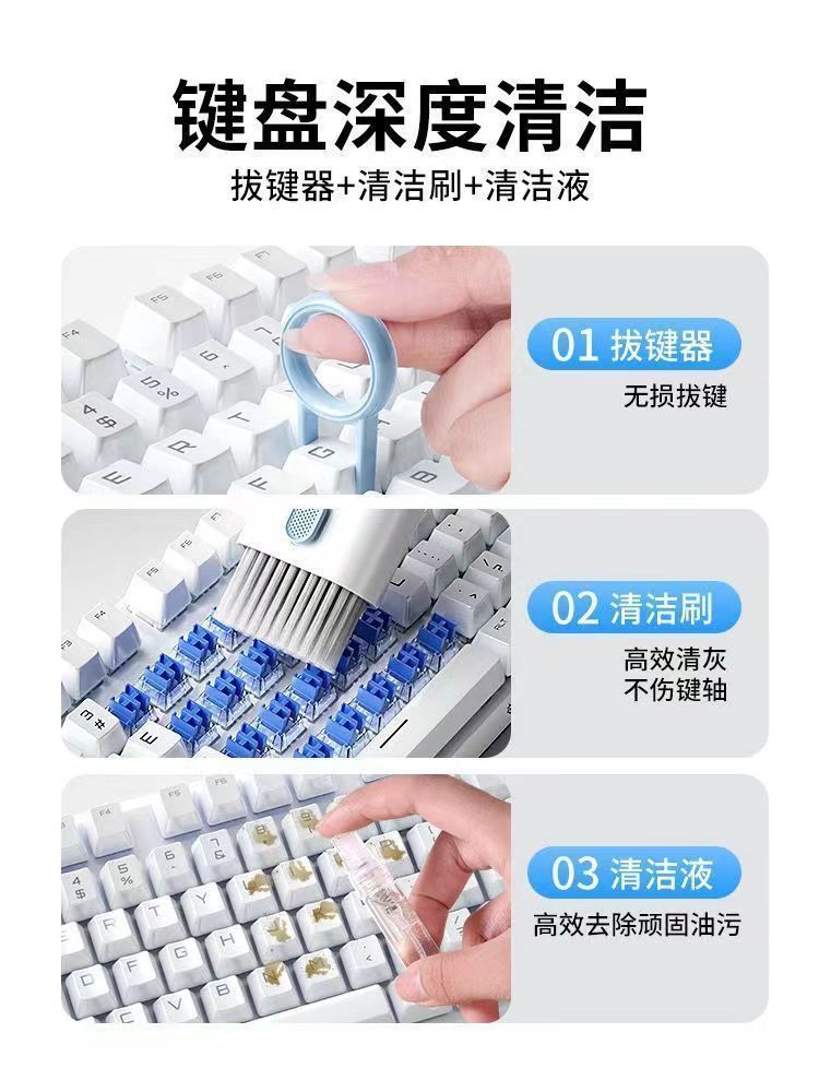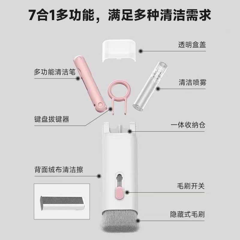 「七合一!多功能清洁刷」电脑键盘刷蓝牙耳机清洁手机屏除尘拔键居家日用清洁工具套装