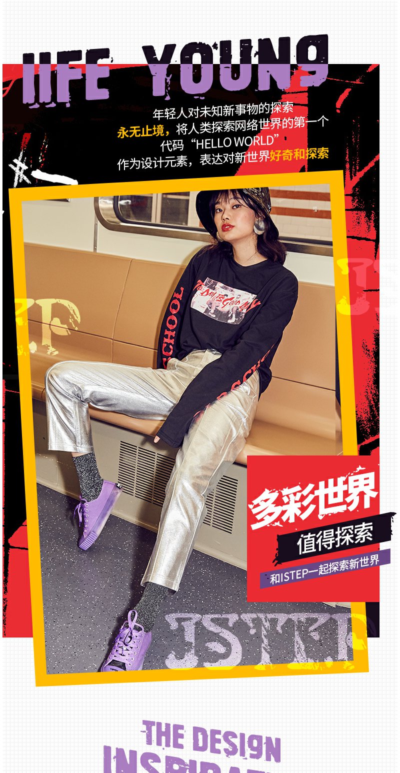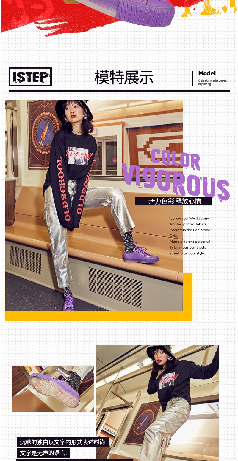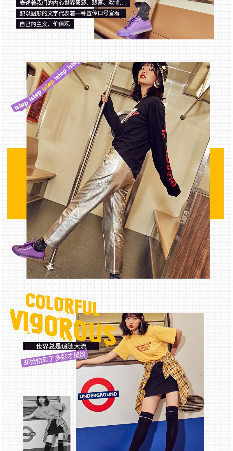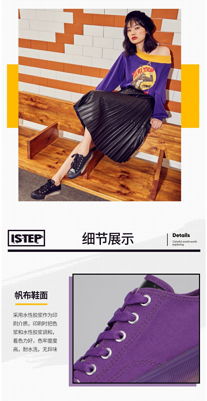 iSTEP夏季情侣款池磊联名帆布鞋国潮闪电撞色拼接印花休闲女鞋