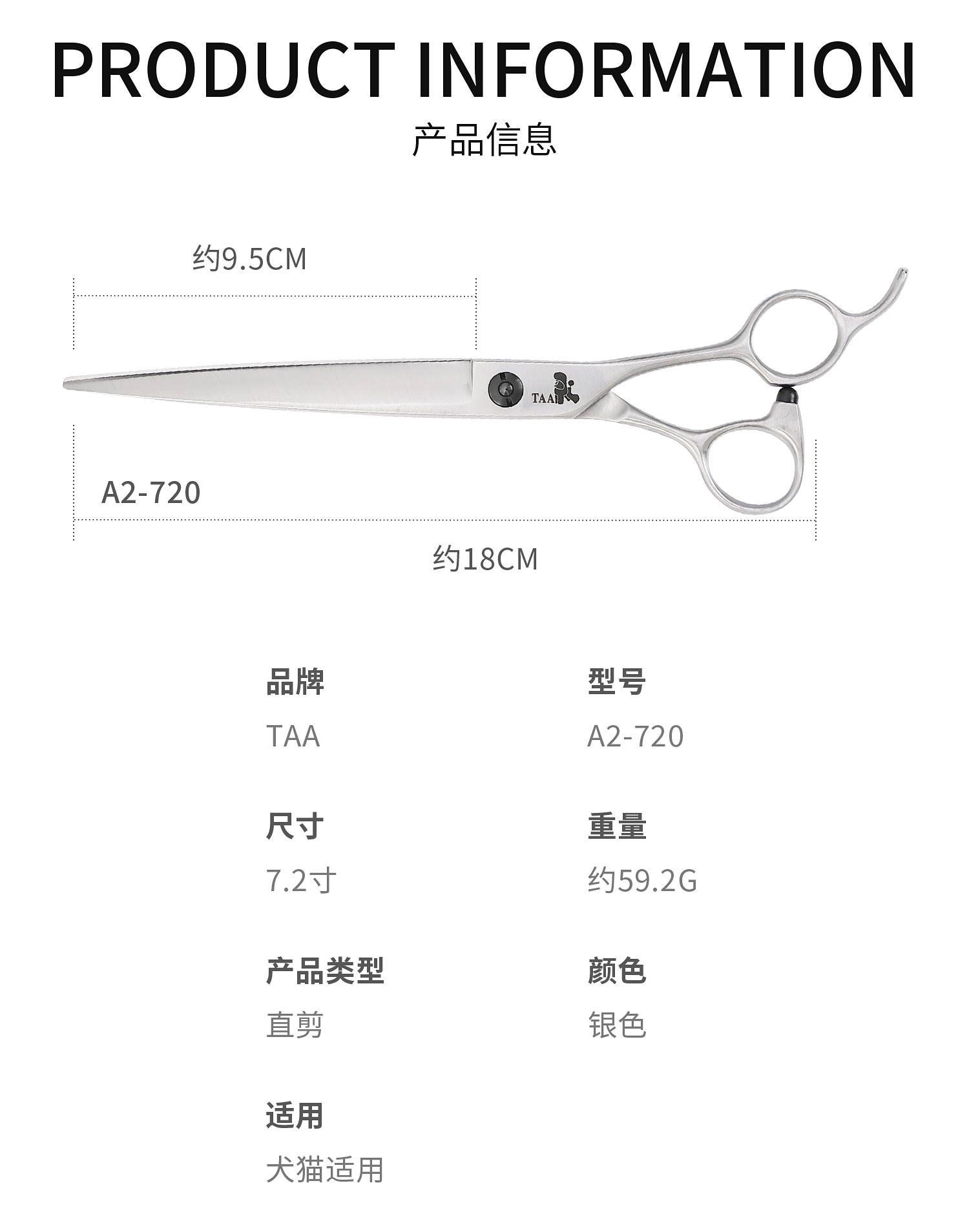 TAA它它宠物美容7.2寸综合直剪A2-720泰迪比熊宠物门店用