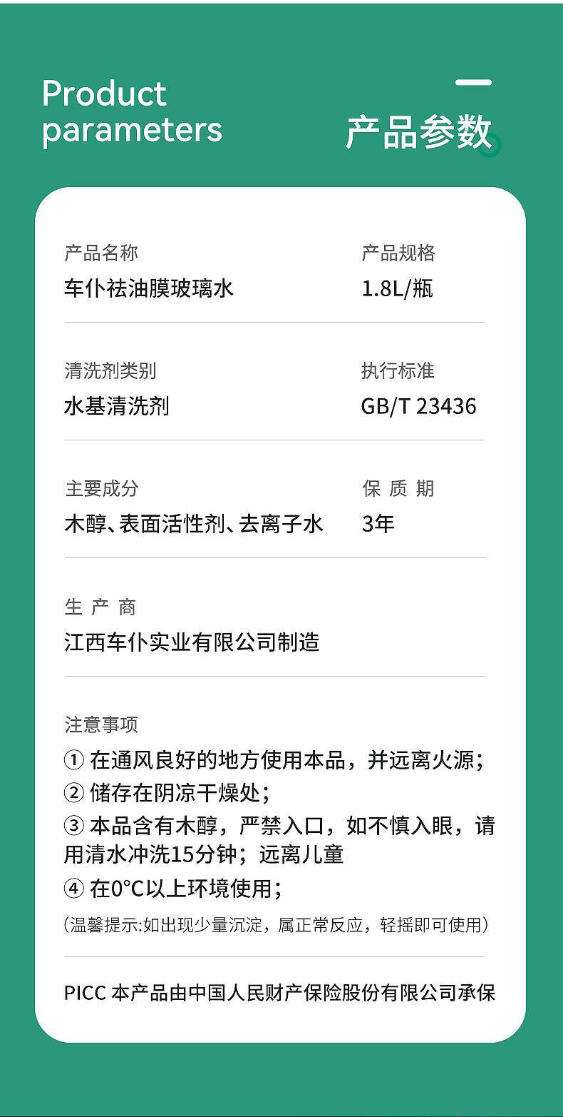 车仆去油膜汽车玻璃水四季通用防冻雨刮水强力除油膜虫胶夏季车用
