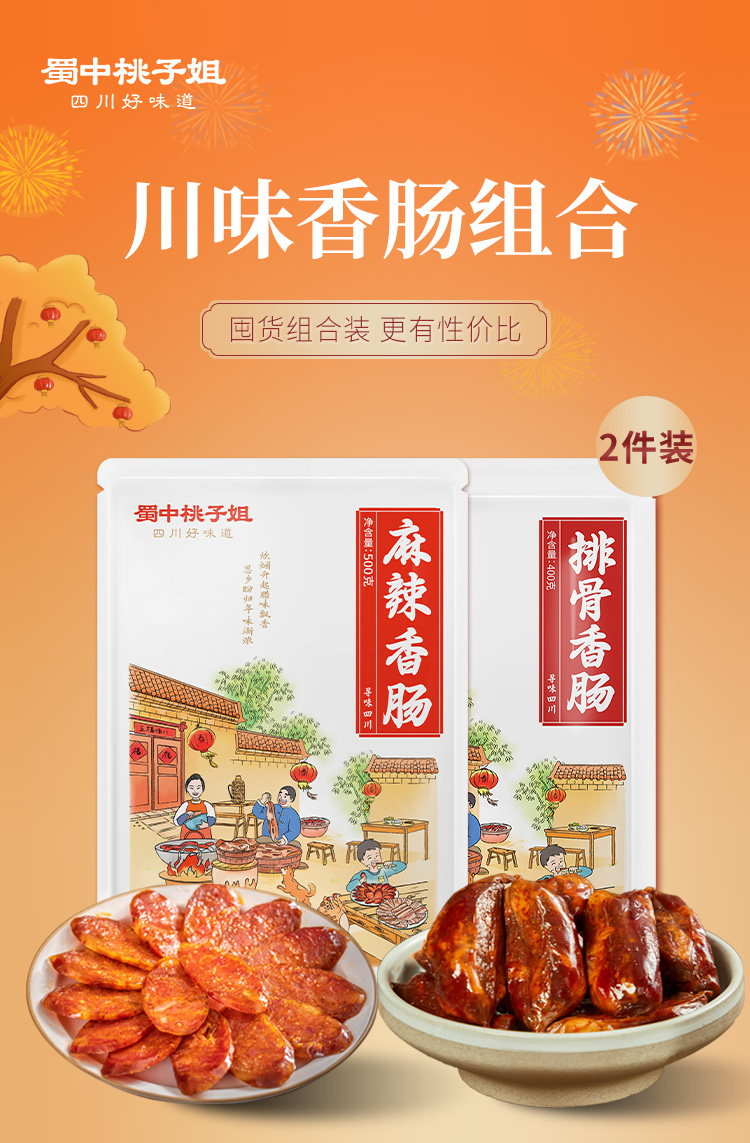 【自营】川式香肠组合装(排骨香肠1袋+麻辣香肠1袋或广味香肠1袋)