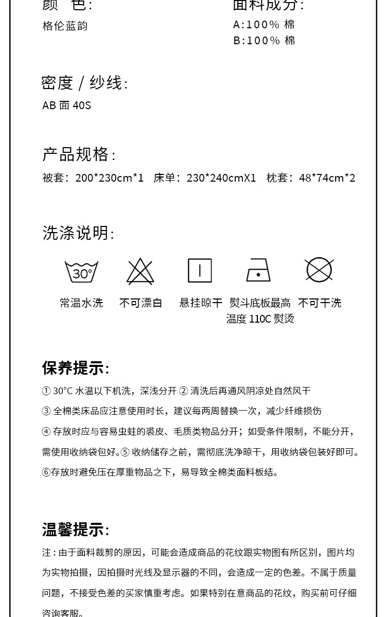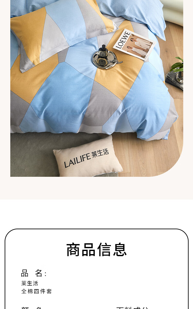 莱生活 全棉四件套-格伦蓝韵 200*230cm