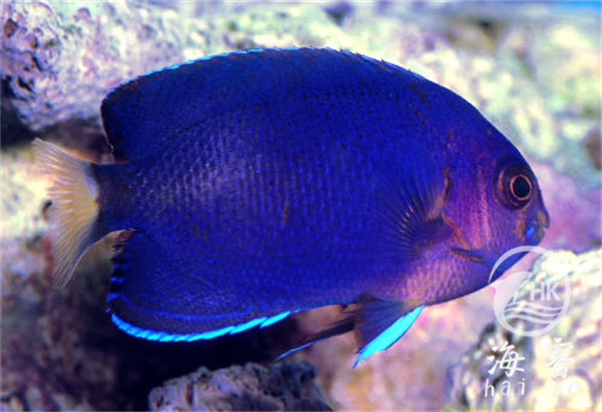 小蓝仙。在神仙鱼家族中是最小的一员,通常长不到5厘米。身体和头部大部分都是深蓝色。