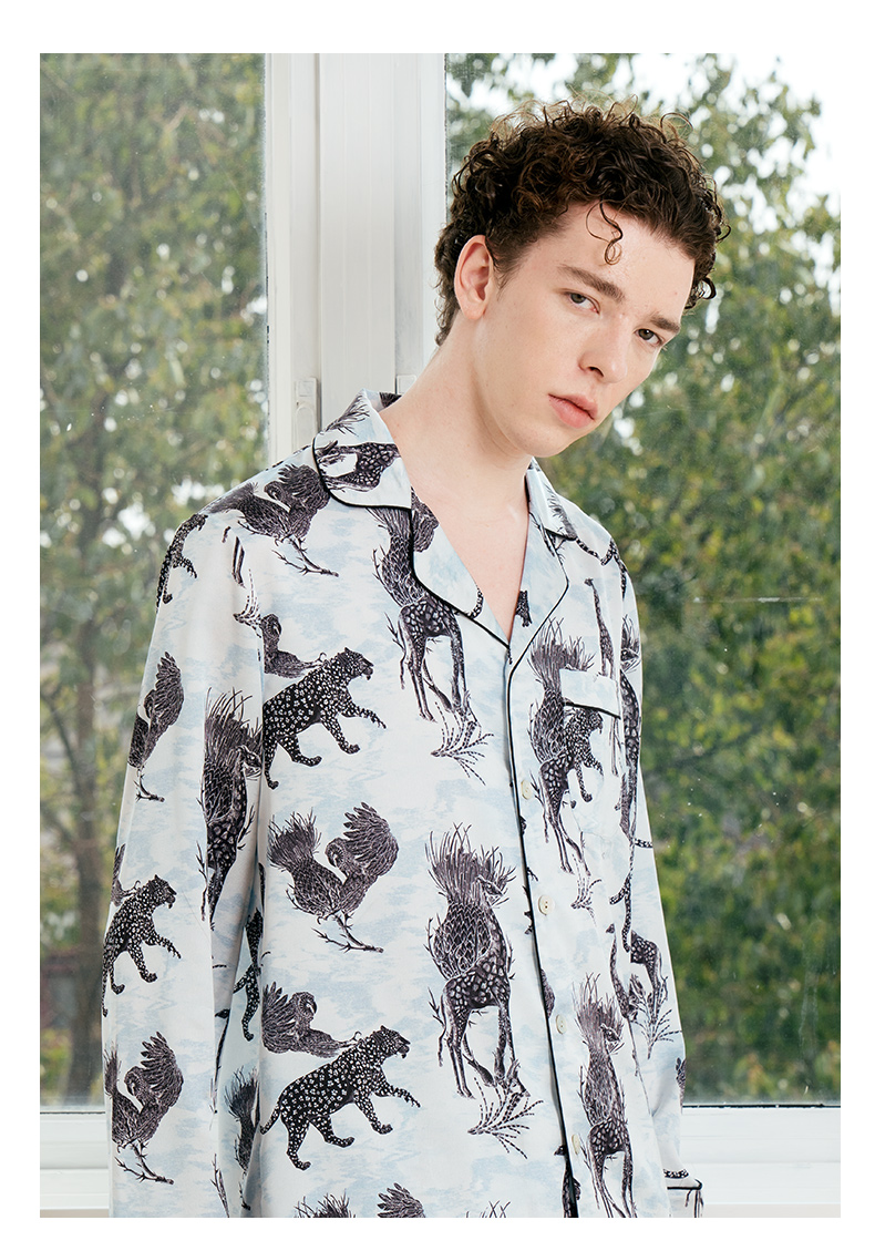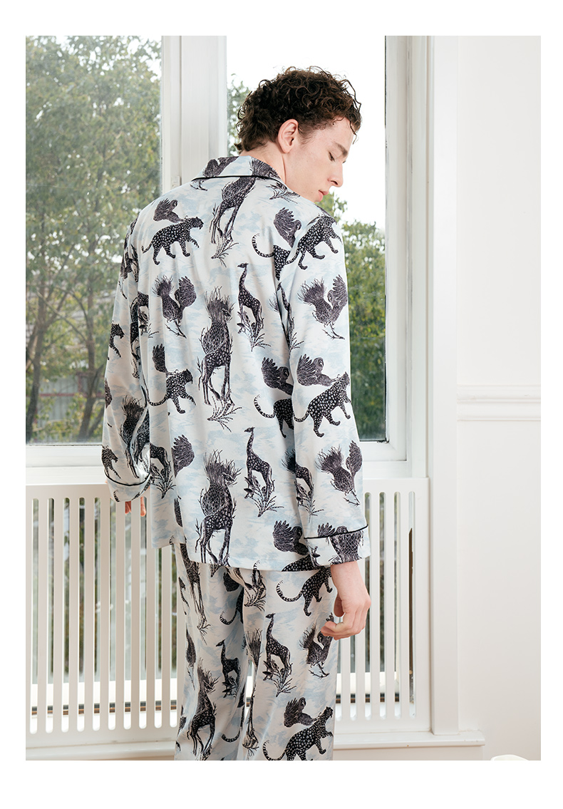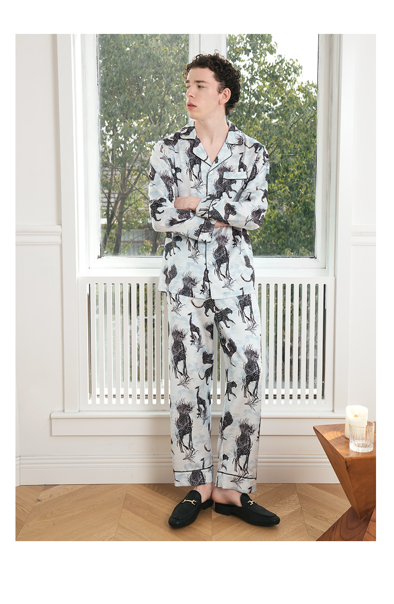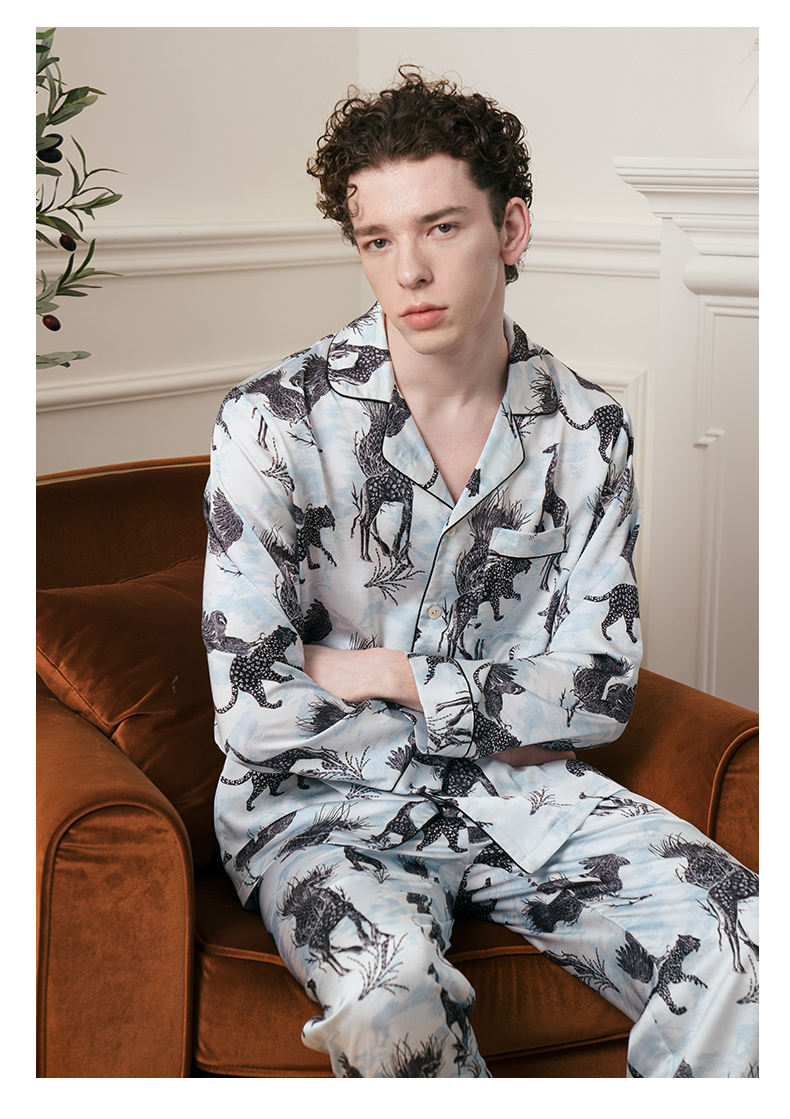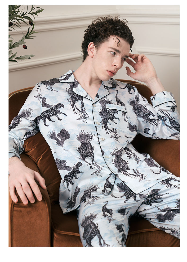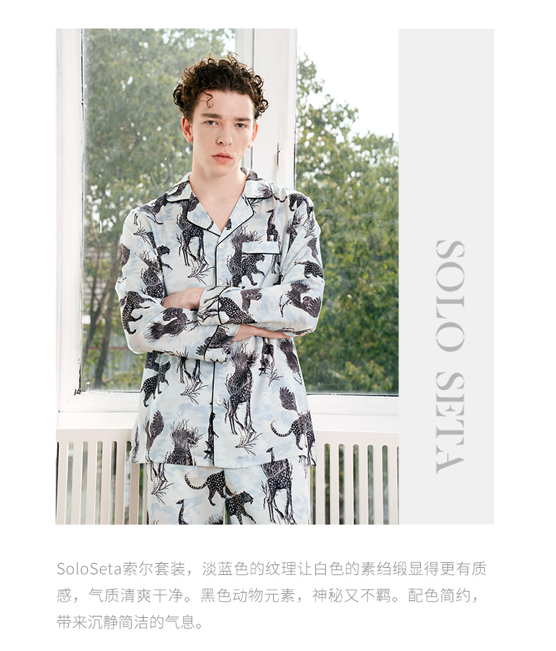 Solo seta22姆米真丝睡衣男士情侣款高级家居服长袖套装送礼