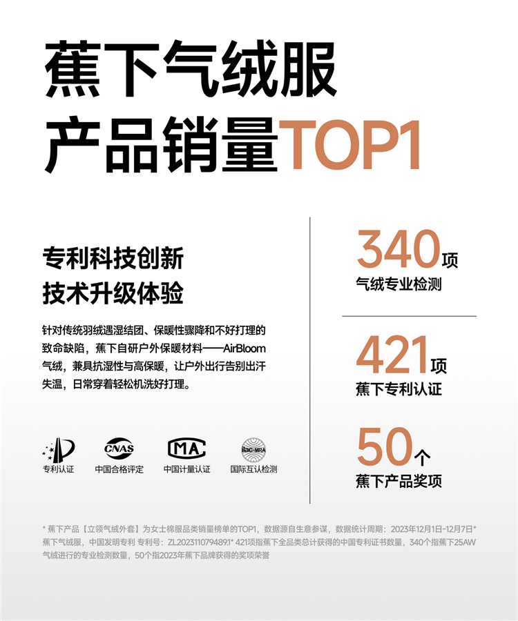 蕉下 女士气绒外套(圆领、中暖)CL002