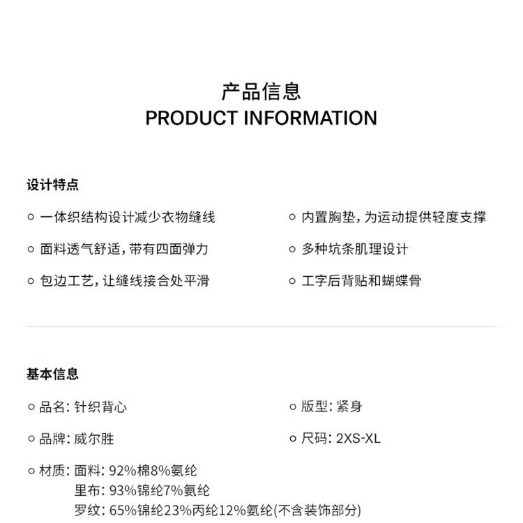 威尔胜(Wilson)夏季新款女士ACE SEAMLESS紧身网球服运动背心WW00496511