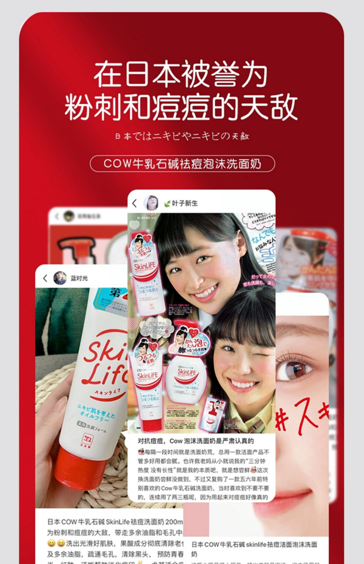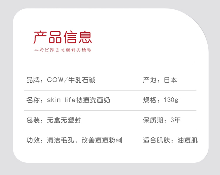 【保税仓】COW/牛乳石碱牛奶SkinLife祛痘泡沫洗面奶乳膏状130g/替换装140ml
