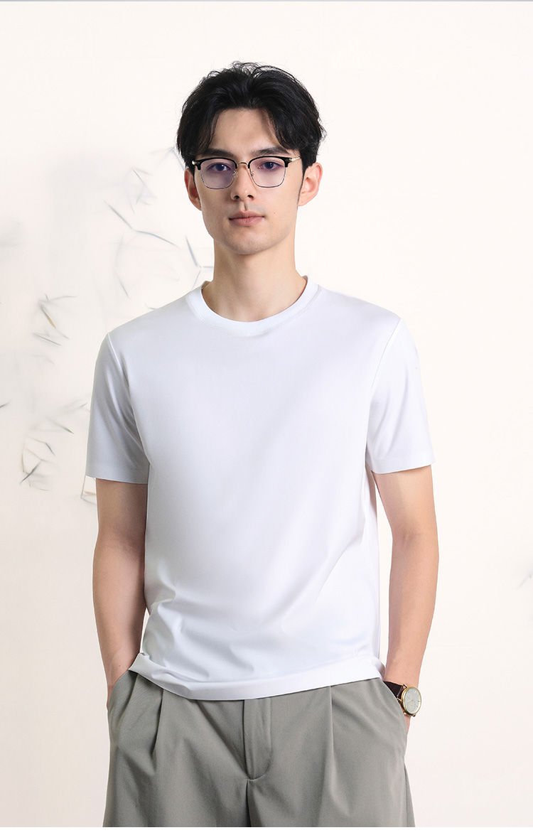 拇指白小T高支压胶圆领短袖T恤无我系列