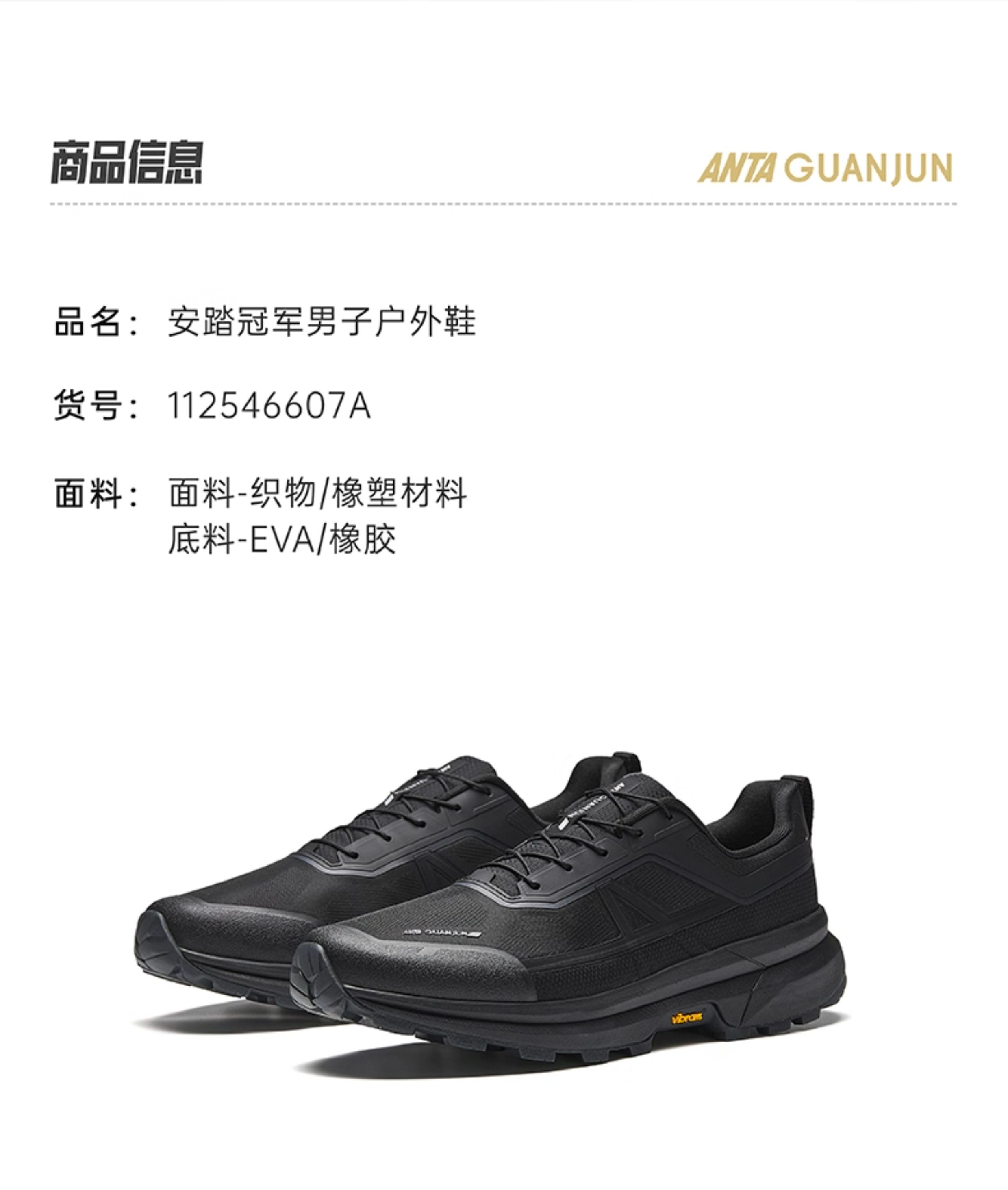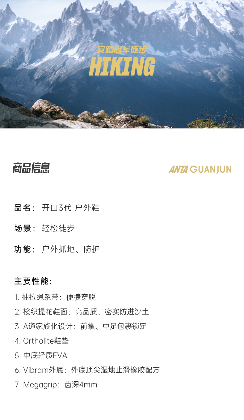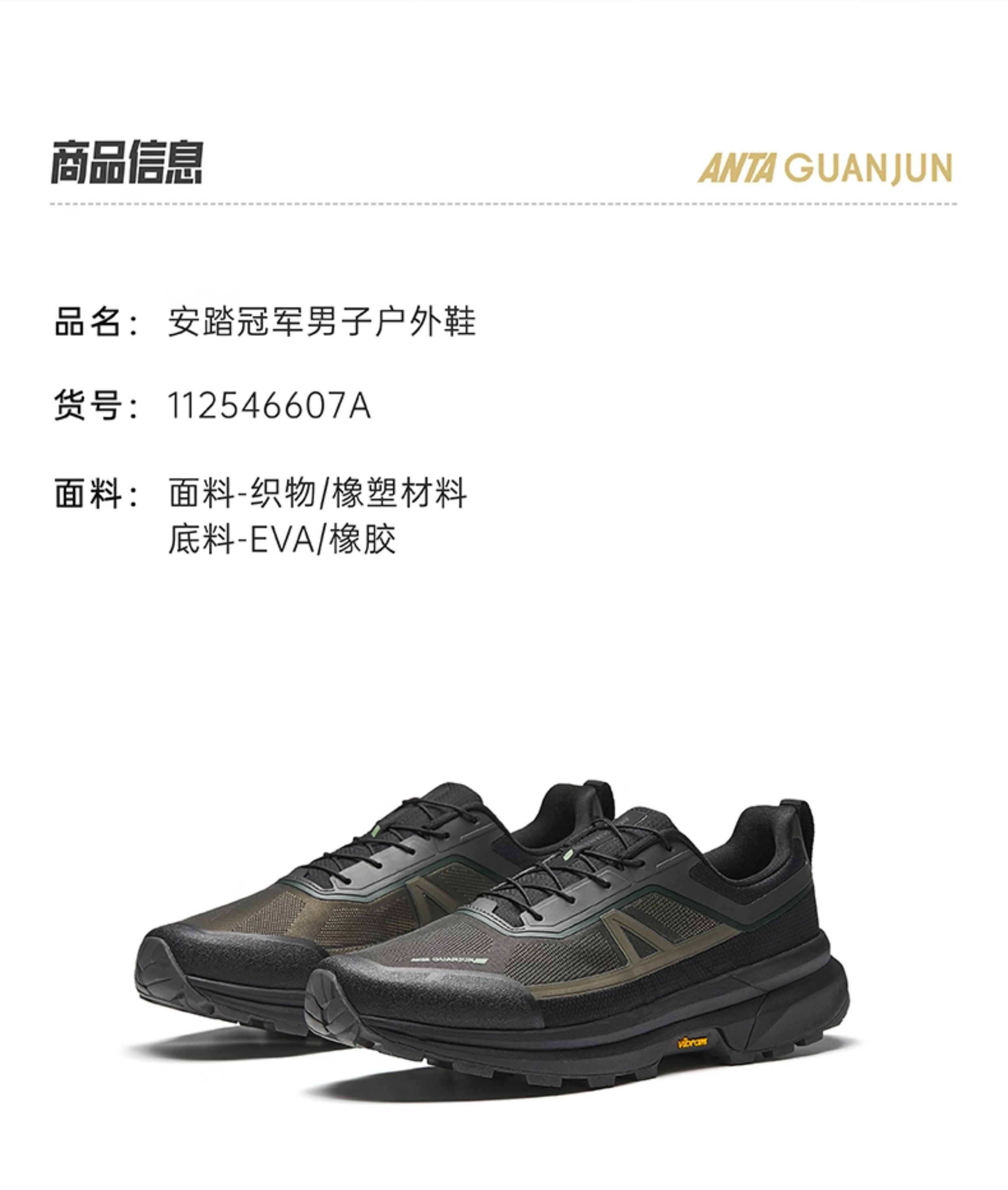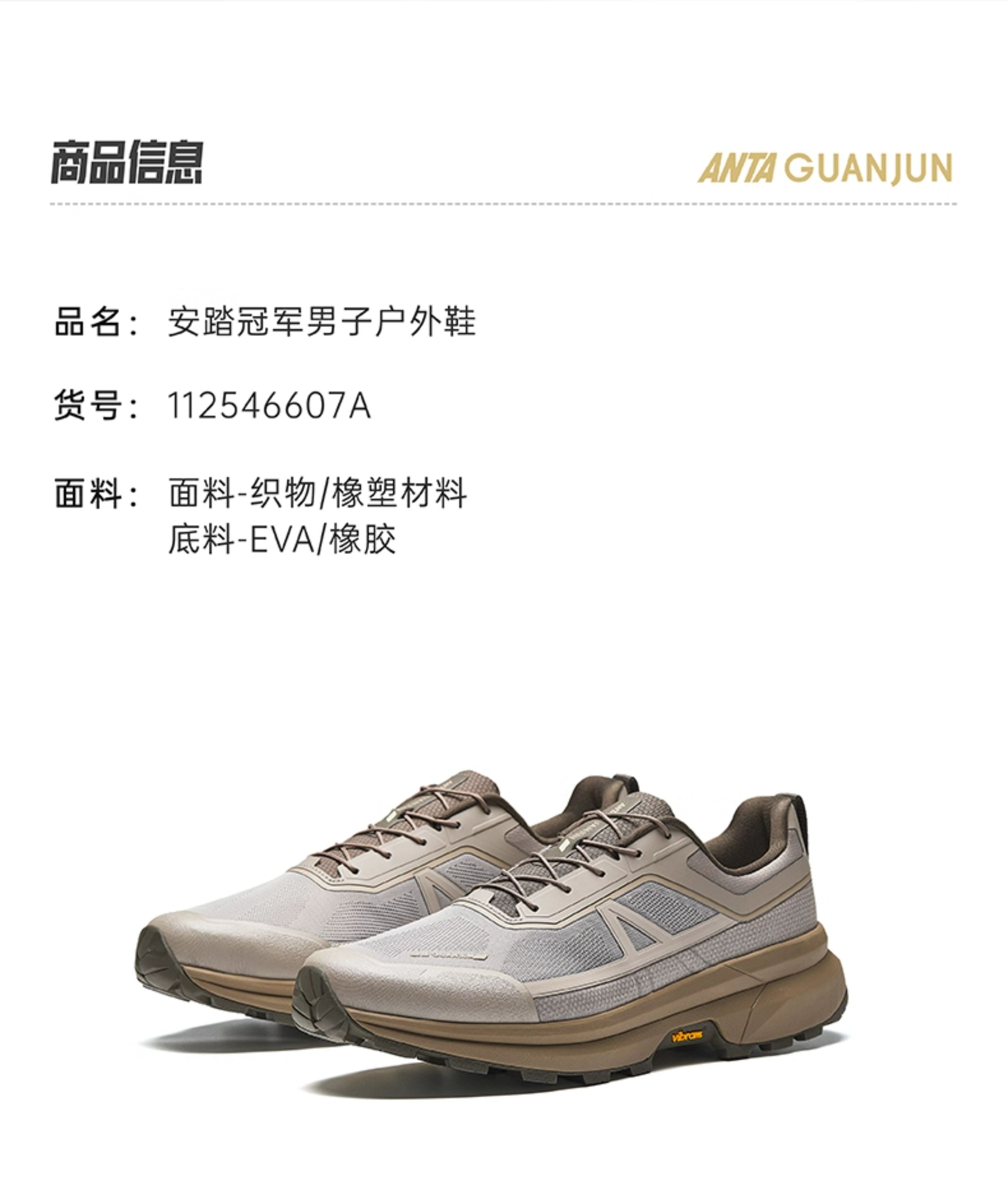 安踏冠军户外开山3徒步鞋男女秋冬抓地防护运动休闲鞋112546607A