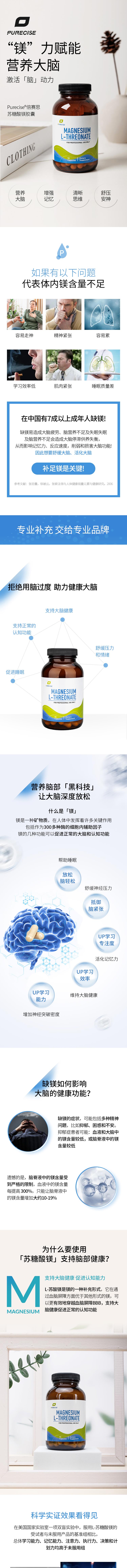 【平静镁 L-苏糖酸镁】 Magnesium L-Threonate 90粒 大脑活力 睡眠平静 大脑健康和记忆 自闭症大脑支持 Purecise®️