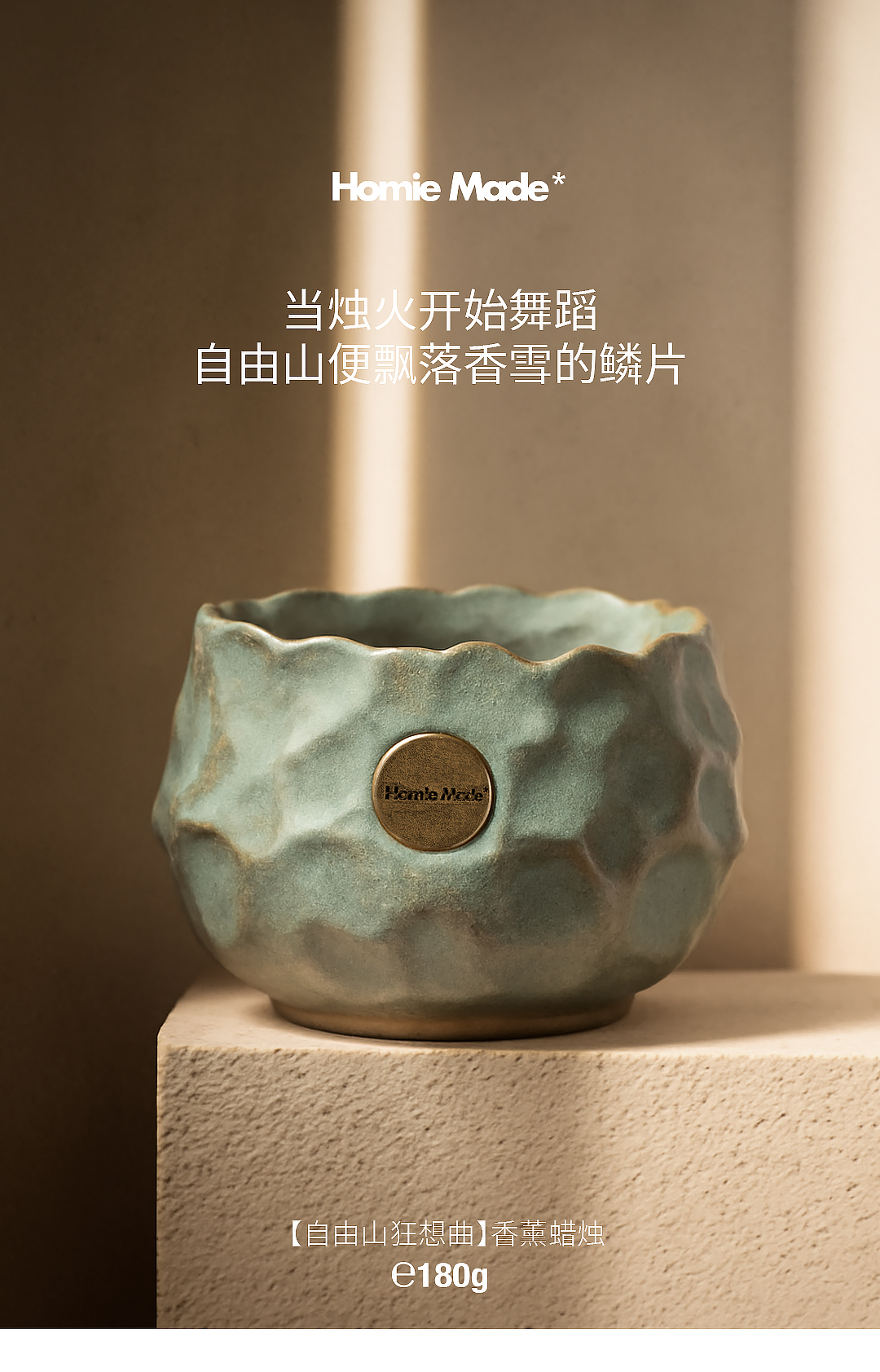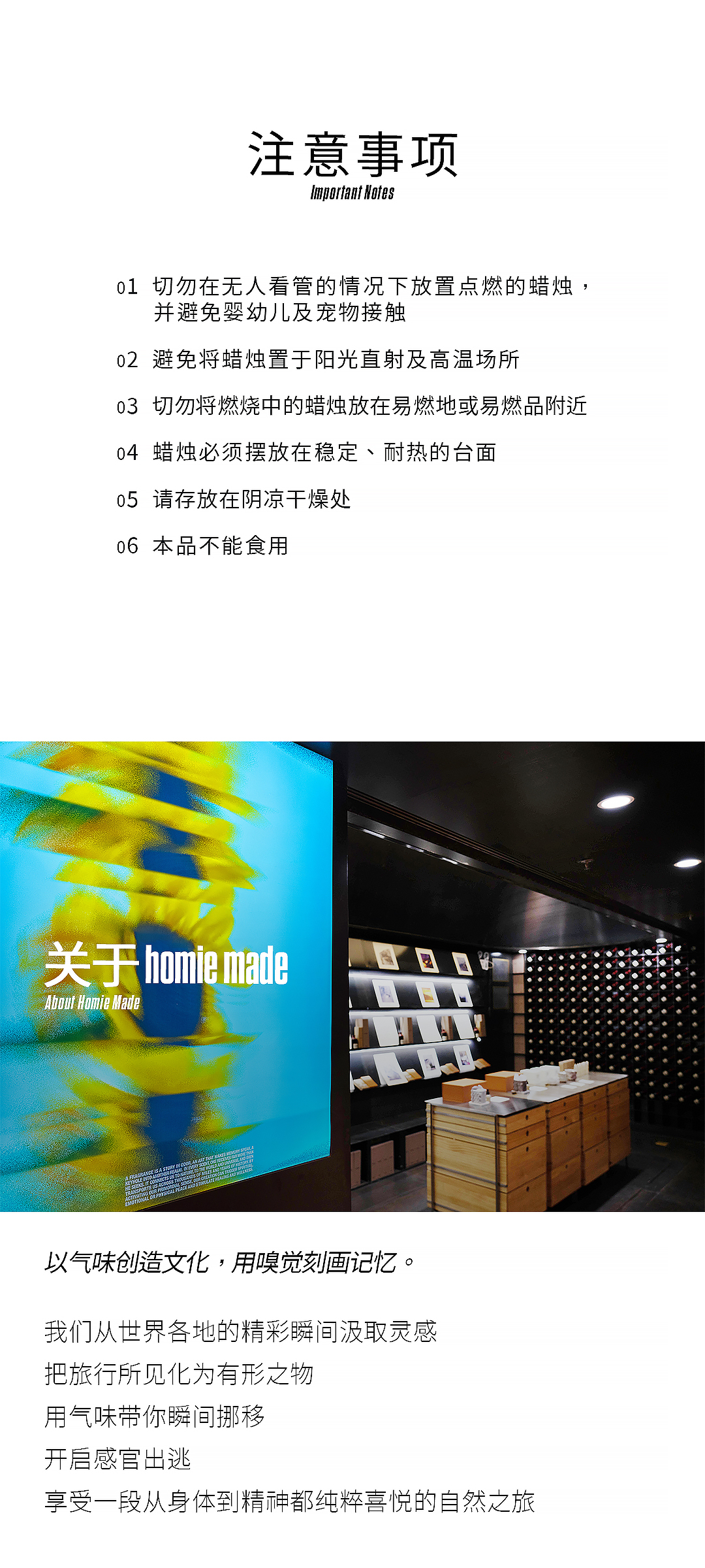 Homie Made 是以户外为灵感的香氛与个护品牌,灵感来源于世界各地正在发生的精彩瞬间。我们以哲学角度关注人与自然的连接,对生活与生命充满敬意的思考,让气味拥有一种思辨气质。