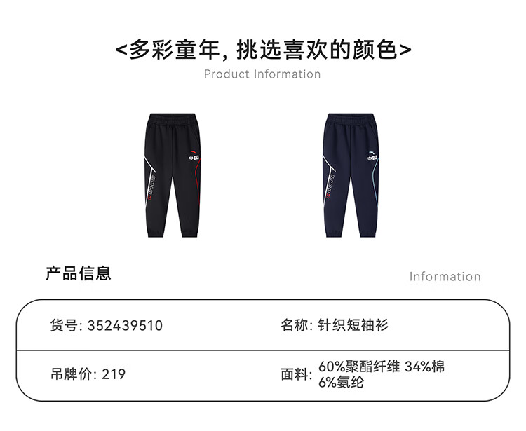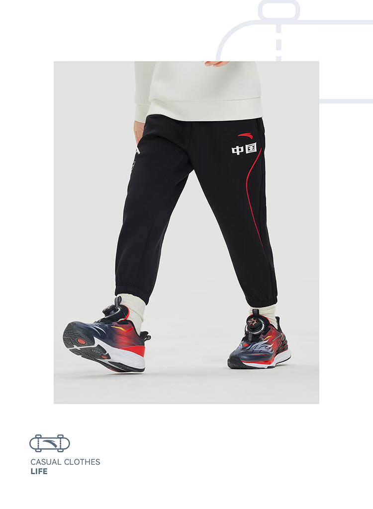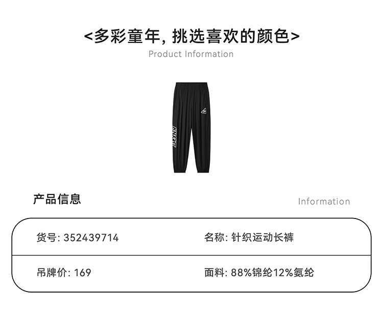 【超值】安踏儿童裤子男小童橡韧科技体适能针织运动长裤352439510