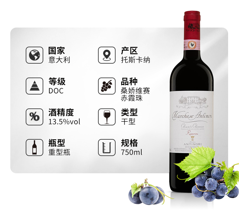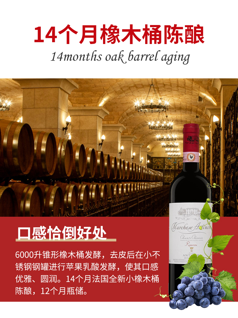 【6支装】意大利进口安东尼侯爵经典基安蒂珍藏干红葡萄酒13.5%vol 750ml/瓶