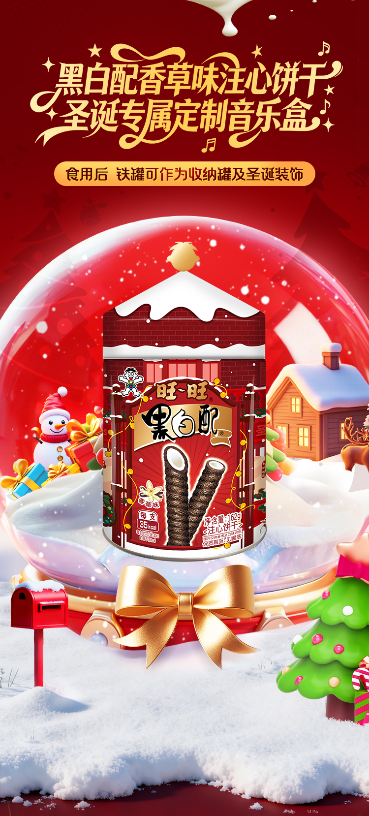 【圣诞限定】旺旺黑白配热红酒牛奶糖多规格至高到手15件