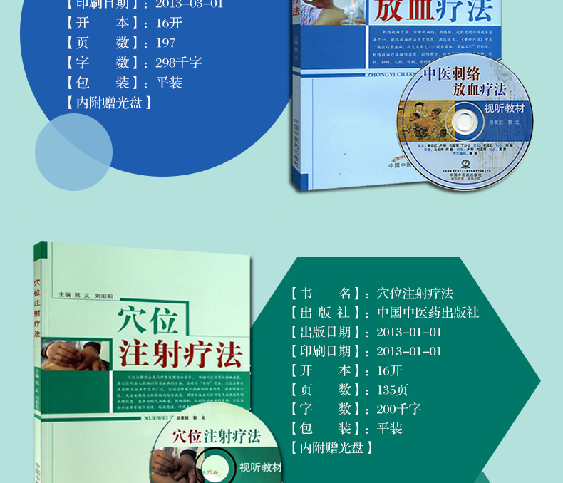 书名:TZ(共2本)中医刺络放血疗法(配光盘)+穴位注射疗法(附光盘)