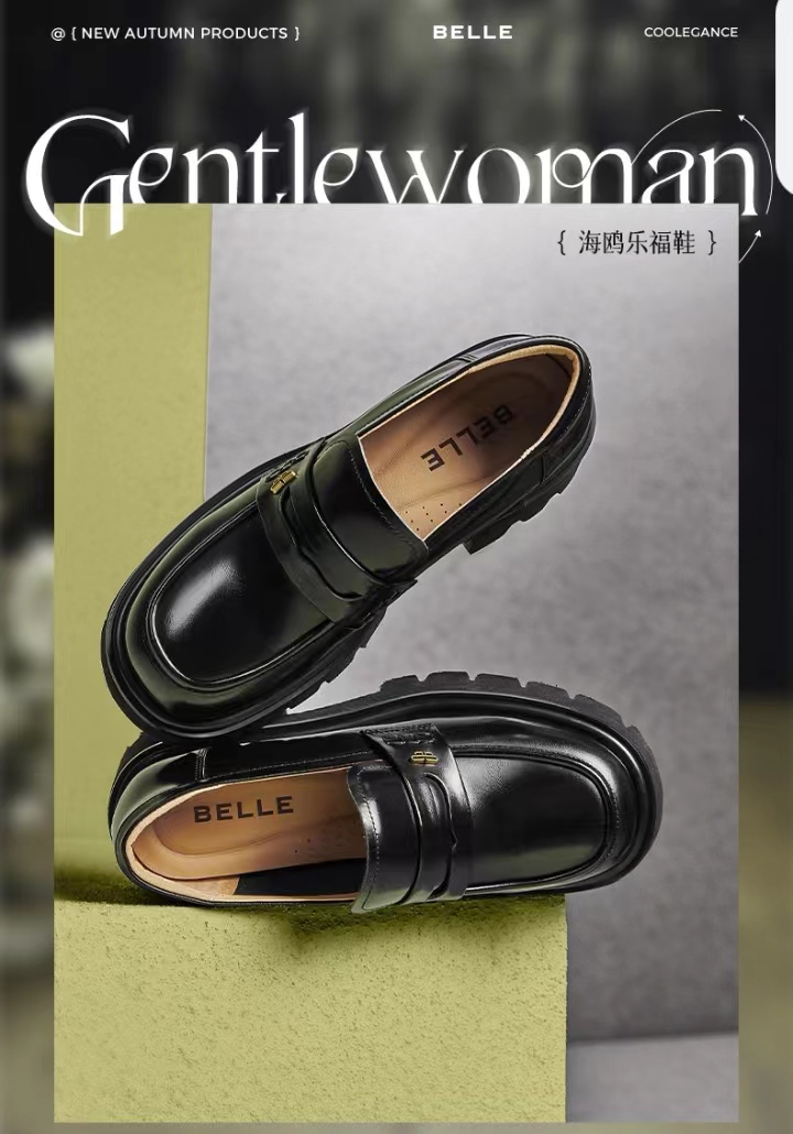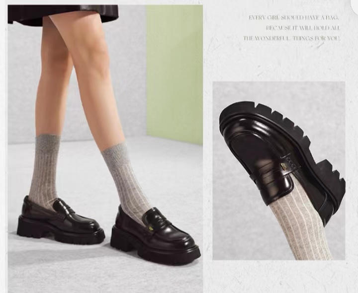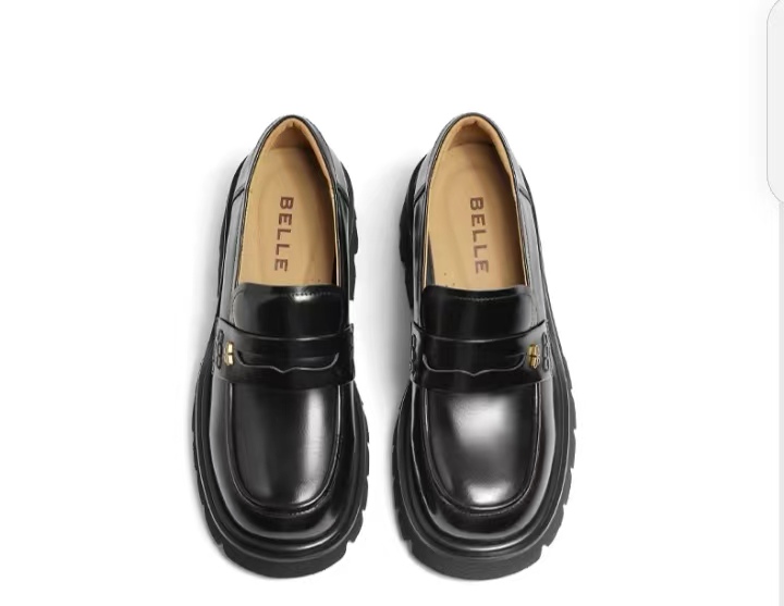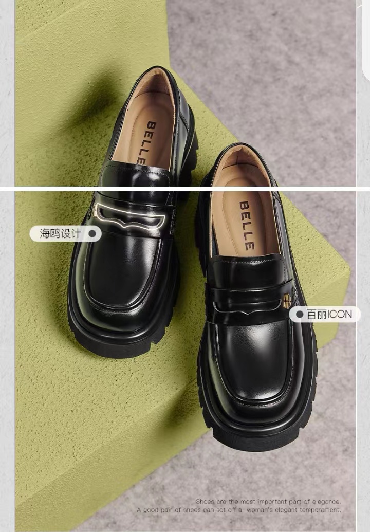 百丽学院风厚底乐福鞋女鞋2024春季新款JK鞋深口真皮单鞋