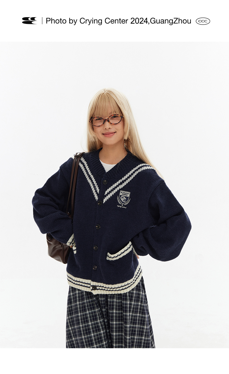 CryingCenter 海军学院开衫针织毛衣 哭喊中心