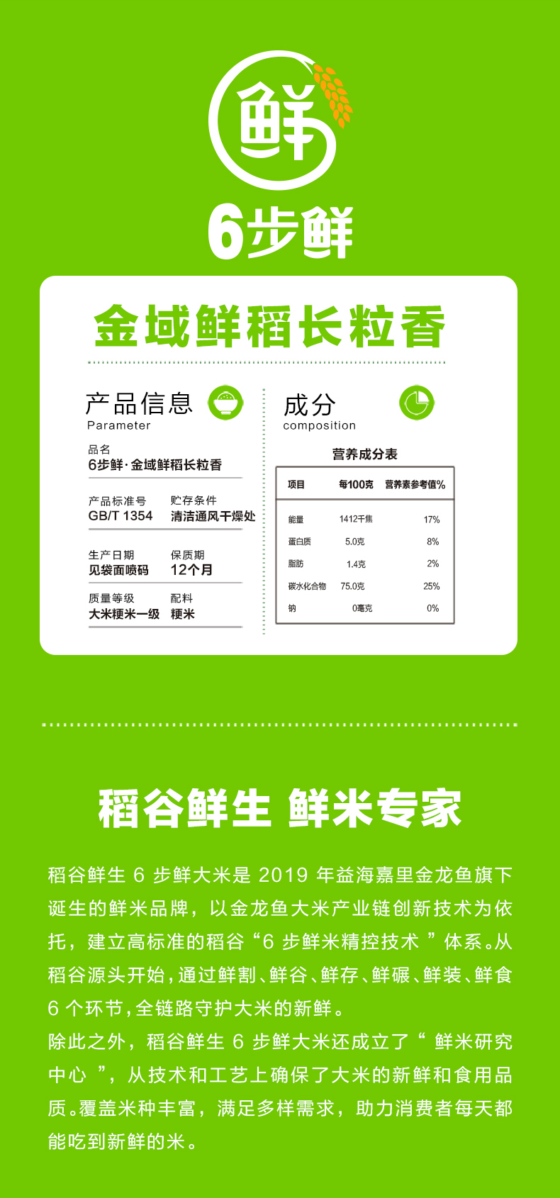 金龙鱼稻谷鲜生6步鲜金域鲜稻长粒香5kg