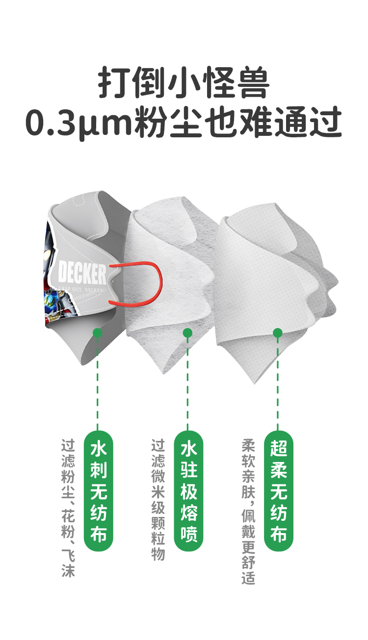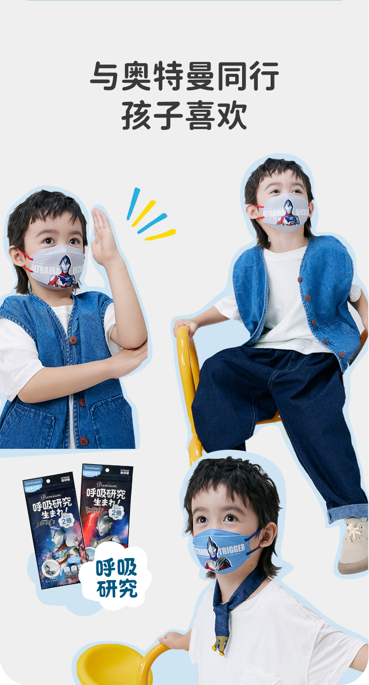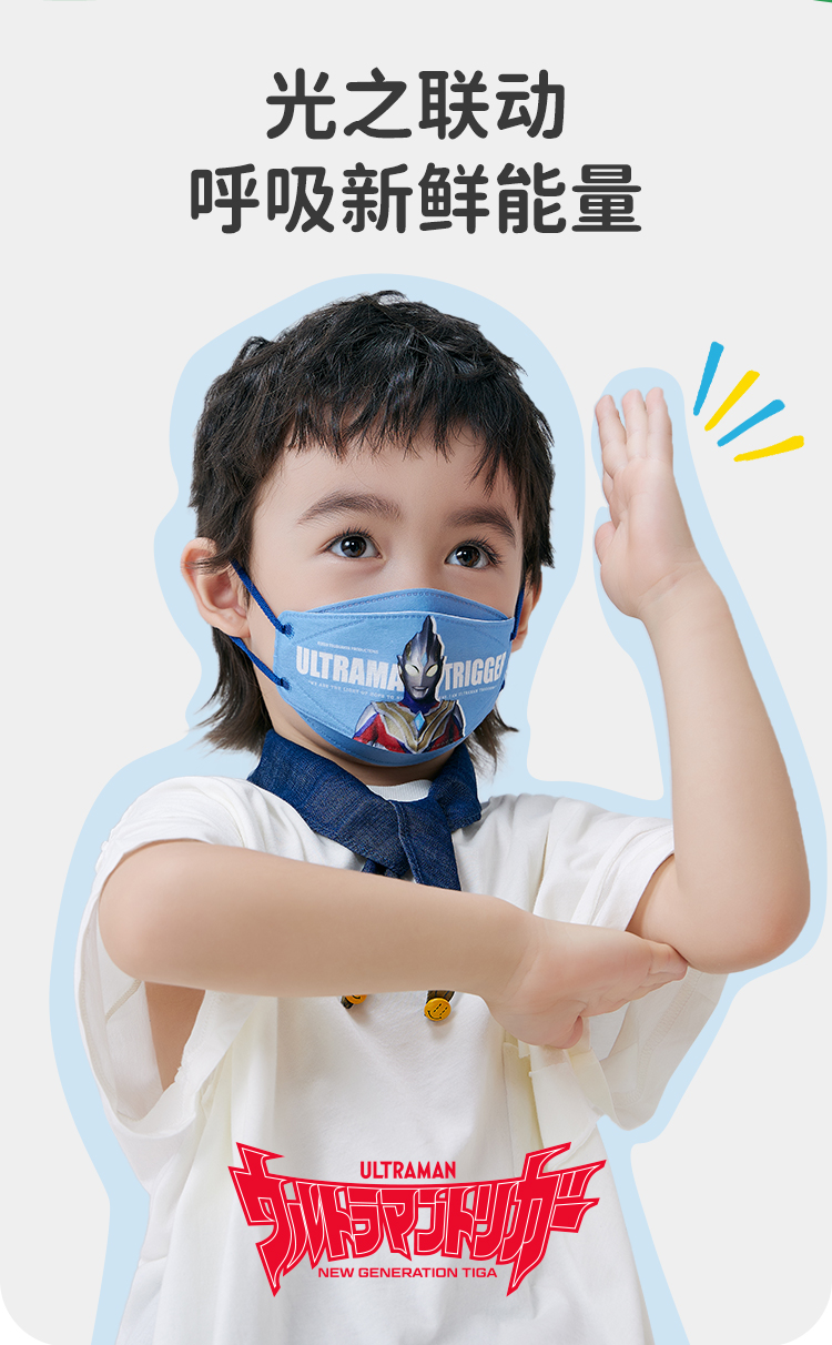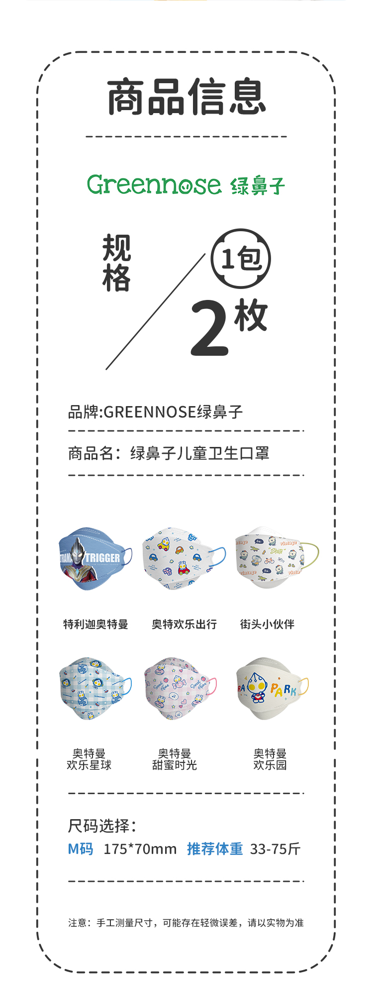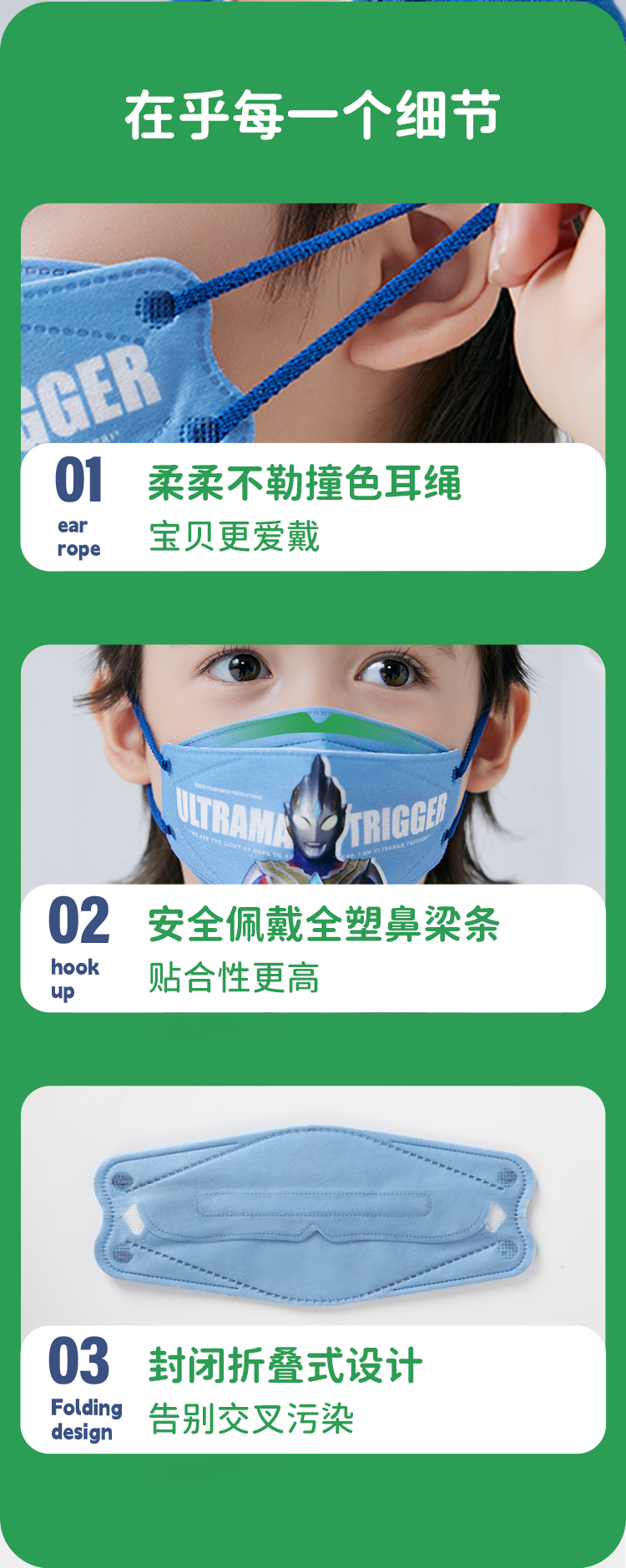 绿鼻子儿童3d立体真人奥特曼柳叶口罩一次性透气专用防护ip联名