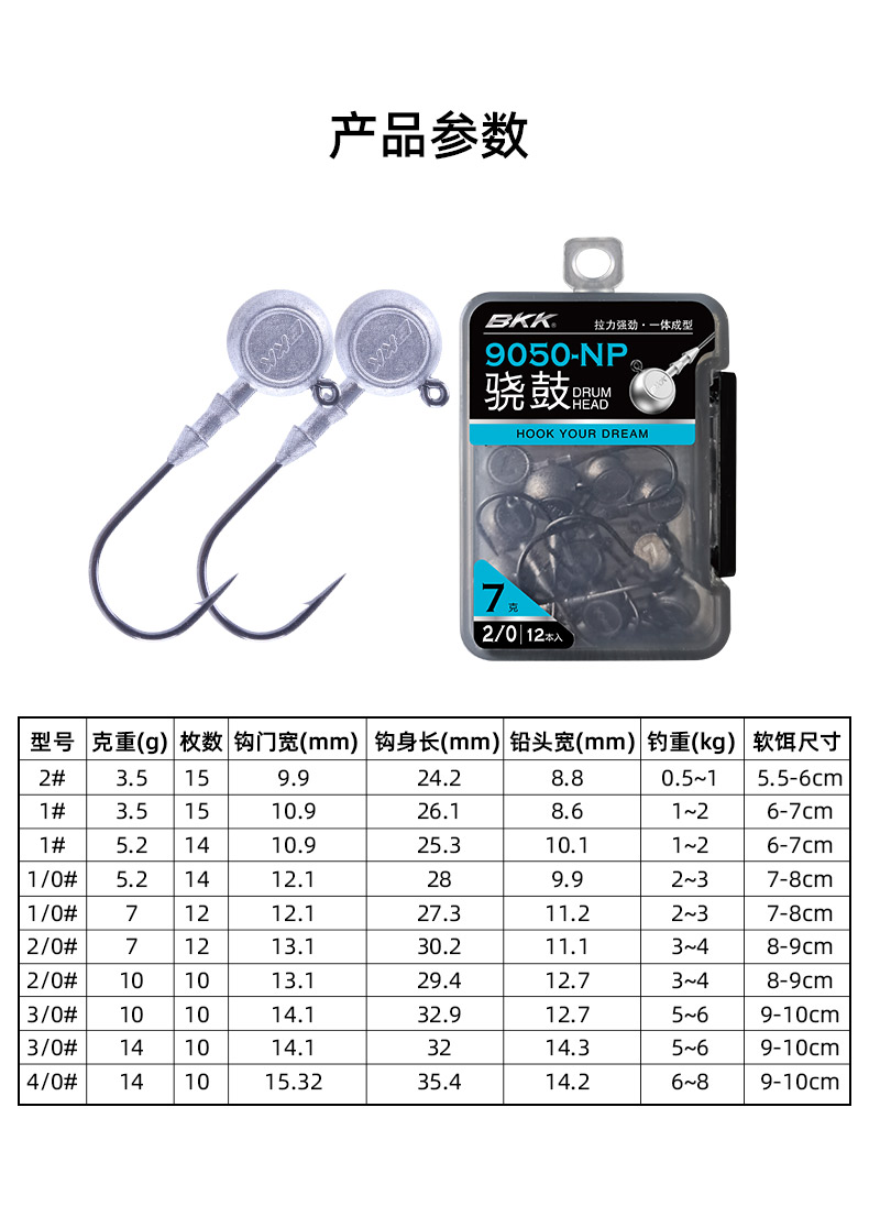 BKK骁鼓铅头钩9050路亚饵软虫软饵钩防挂底鲈鱼鳜鱼钓钩