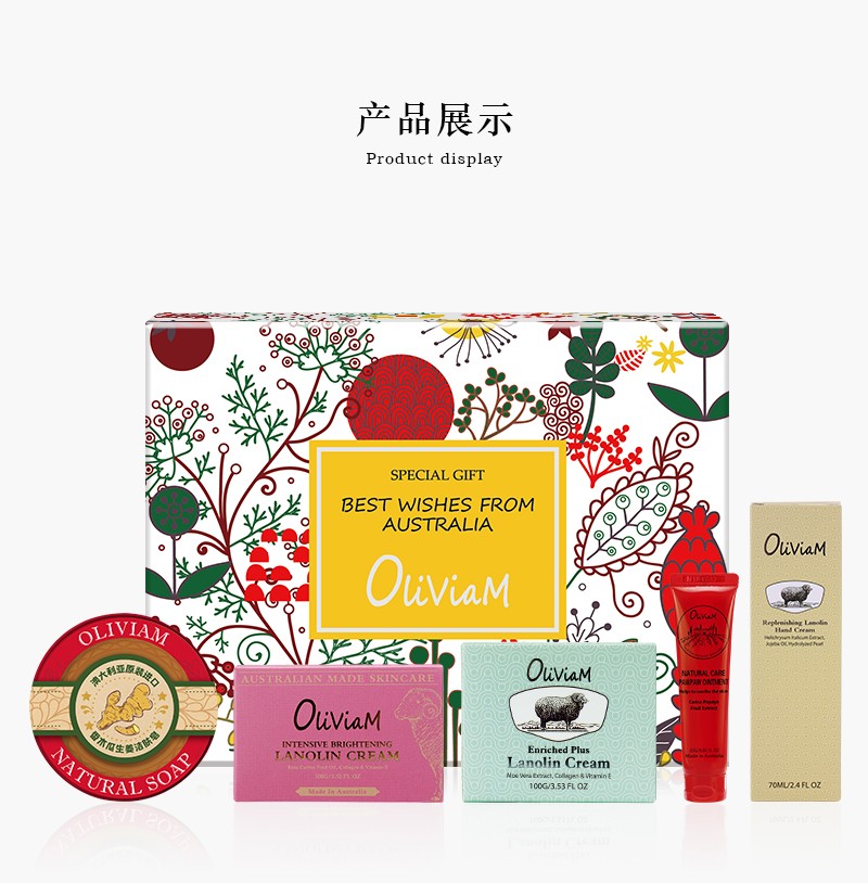 澳莉维亚繁花似锦清洁护肤五件套礼盒(手工皂+芦荟霜+玫瑰霜+木瓜膏+手霜)