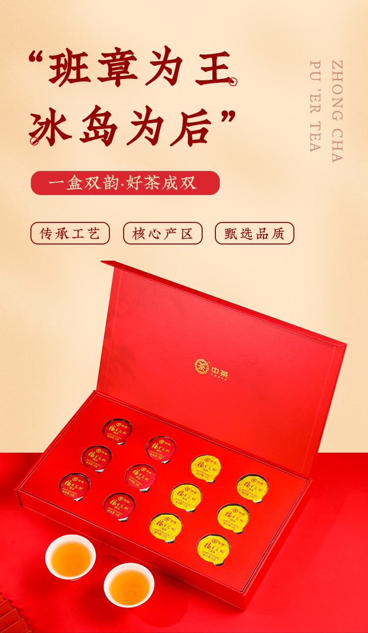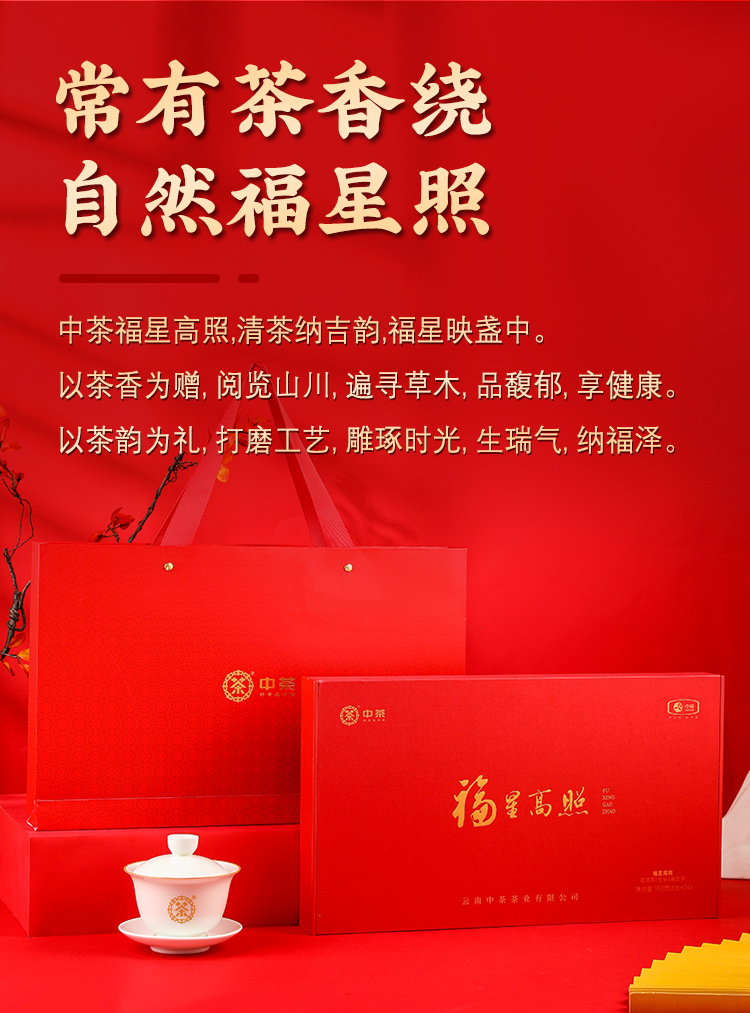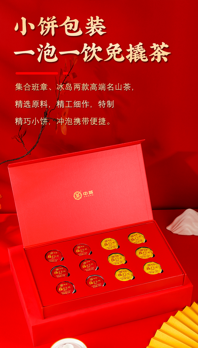 甄选 | 【中茶】普洱茶生茶 中华老字号班章冰岛古树头春 福星高照茶叶礼盒192克(8克x24) 中茶福星高照班章冰岛组合礼盒