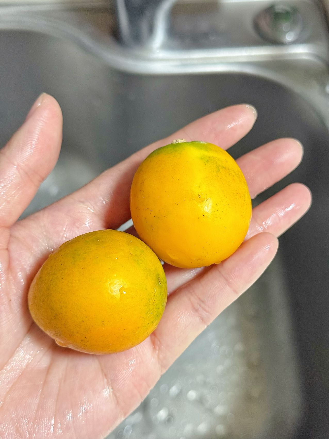 初期金桔表皮会黄中带青,不用担心,都是成熟无酸的,可以大胆吃。