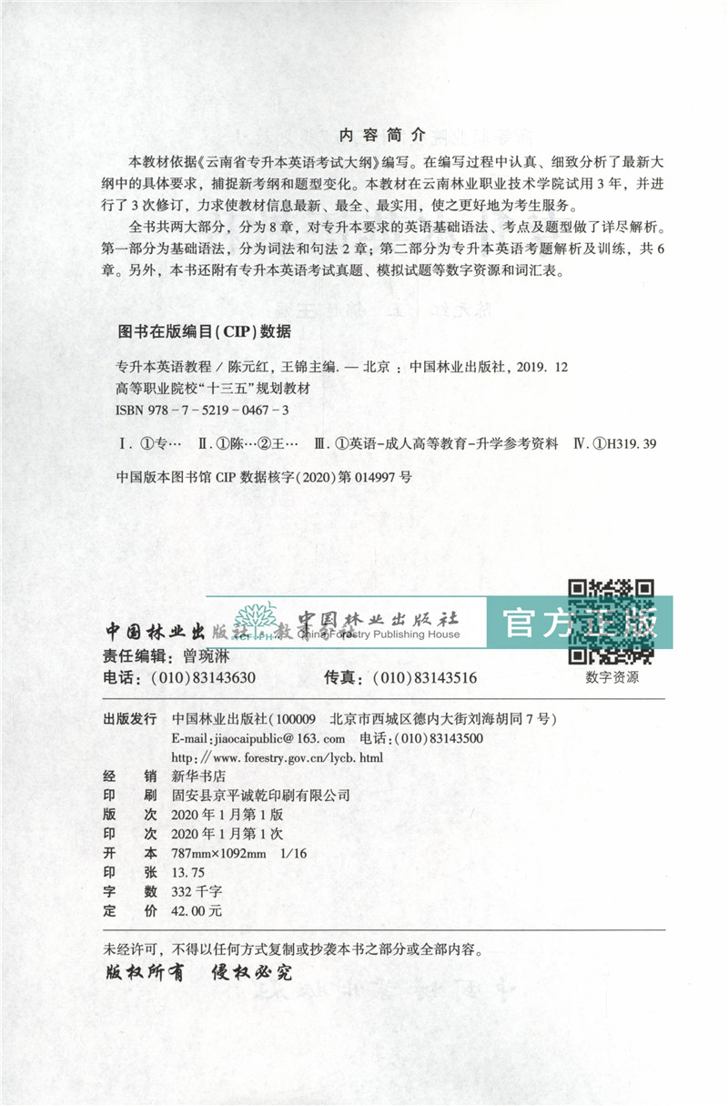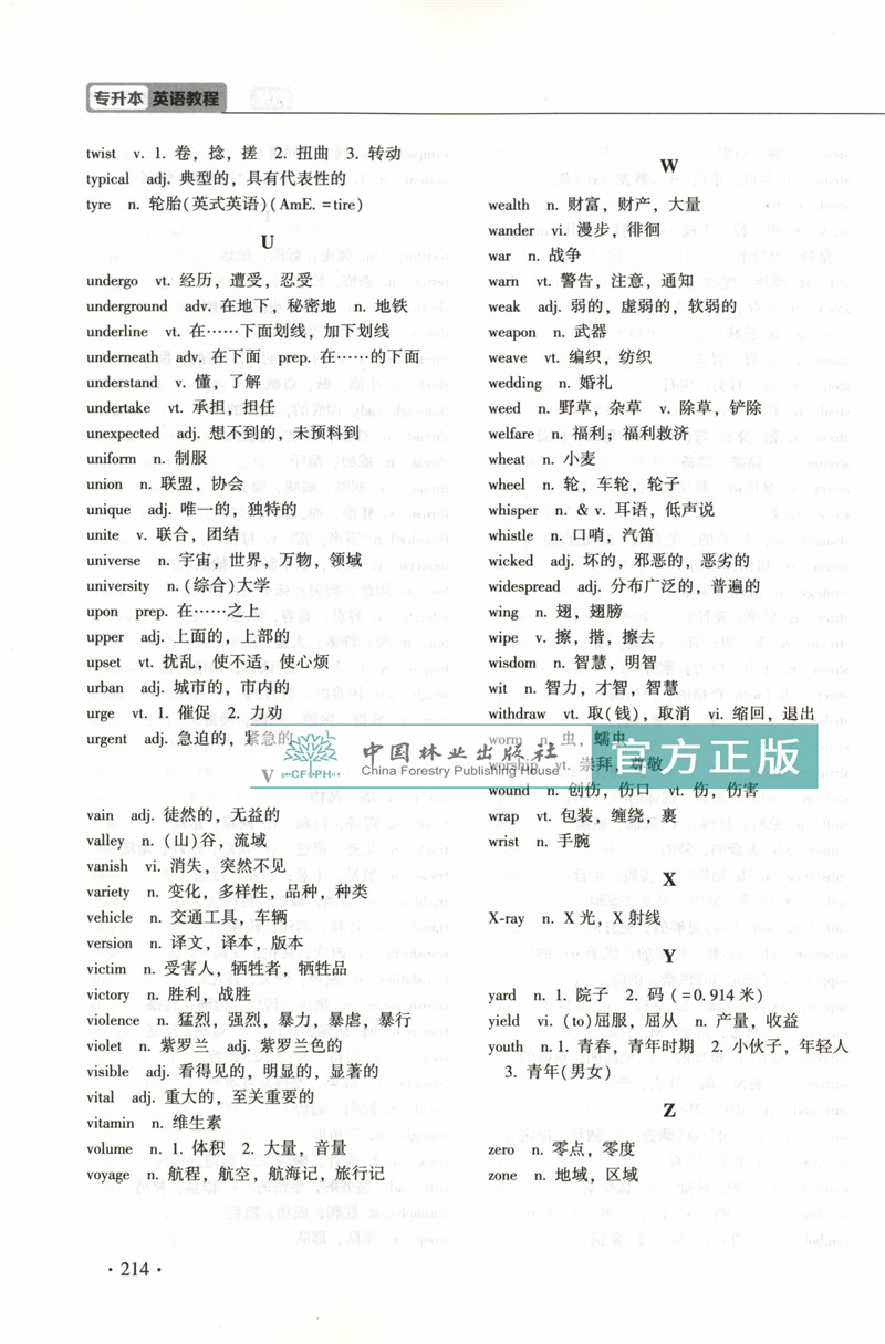 专升本英语教程 0467 陈元红 王锦主编 高等职业院校十三五规划教育 中国林业出版社