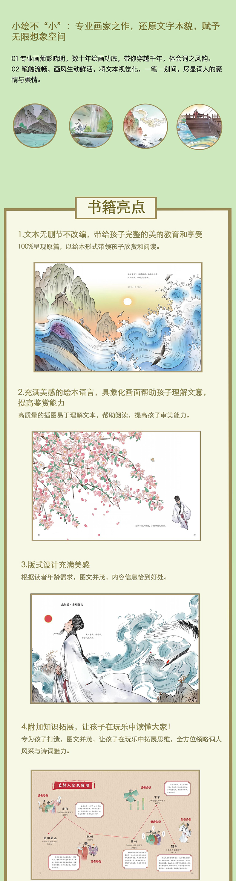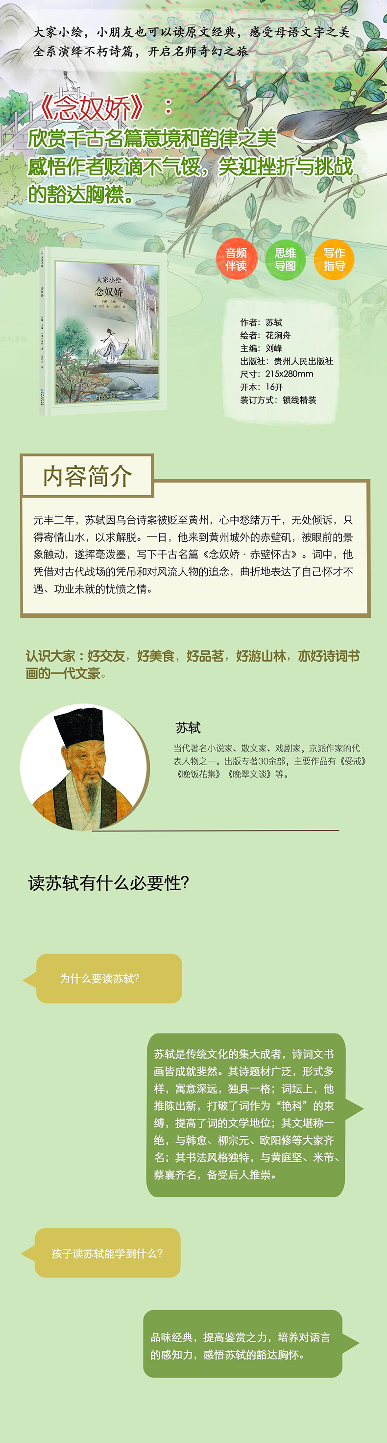 苏轼因乌台诗案被贬至黄州,心中愁绪万千,无处倾诉,只得寄情山水,以求解脱。一日,他来到黄州城外的赤壁矶,被眼前的景象触动,遂挥毫泼墨,写下千古名篇《念奴娇·赤壁怀古》。词中,他凭借对古代战场的凭吊和对风流人物的追念,曲折地表达了自己怀才不遇、功业未就的忧愤之情。 同年与朋友春日出游,风雨忽至,朋友深感狼狈,他却毫不在乎,泰然处之,并写下《定风波》一词。这首词篇幅虽短,但意境深远,展现了他身处逆境而不畏惧、不颓丧的豁达胸怀。 苏轼擅豪放词词风,亦擅婉约词风。《蝶恋花·春景》便是其婉约词风的代表作之一。全词词意婉转,情感动人,于清新自然中透露出淡淡的哀怨与伤情,意境朦胧而韵味悠长,令人回味无穷。