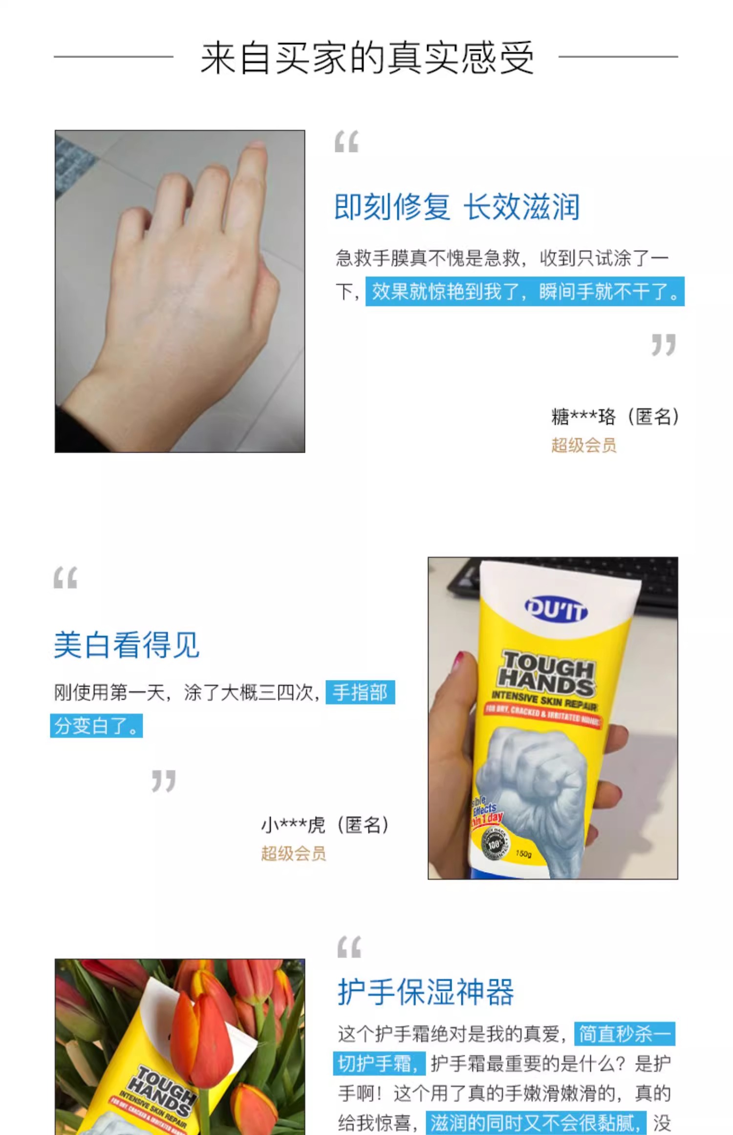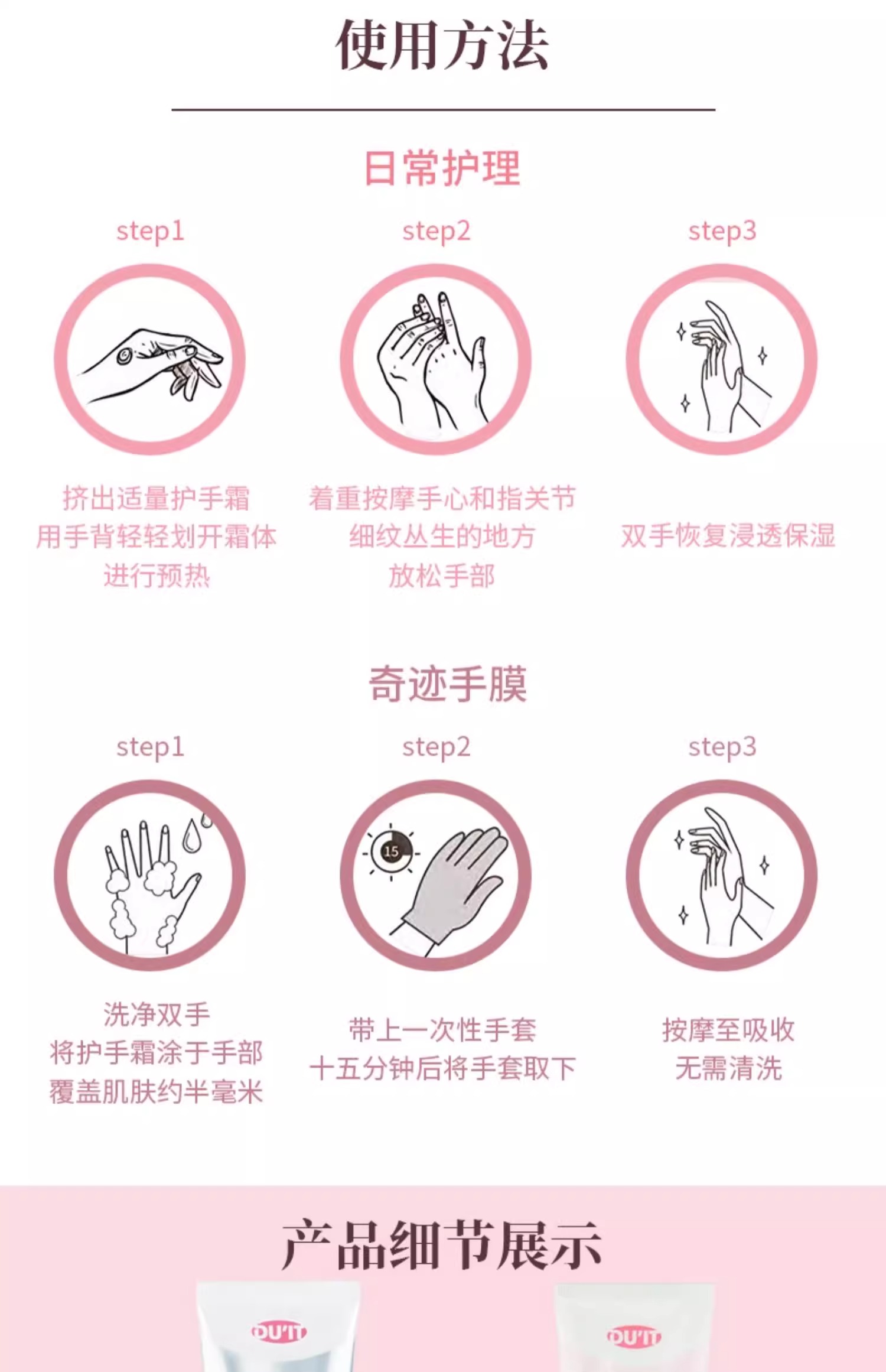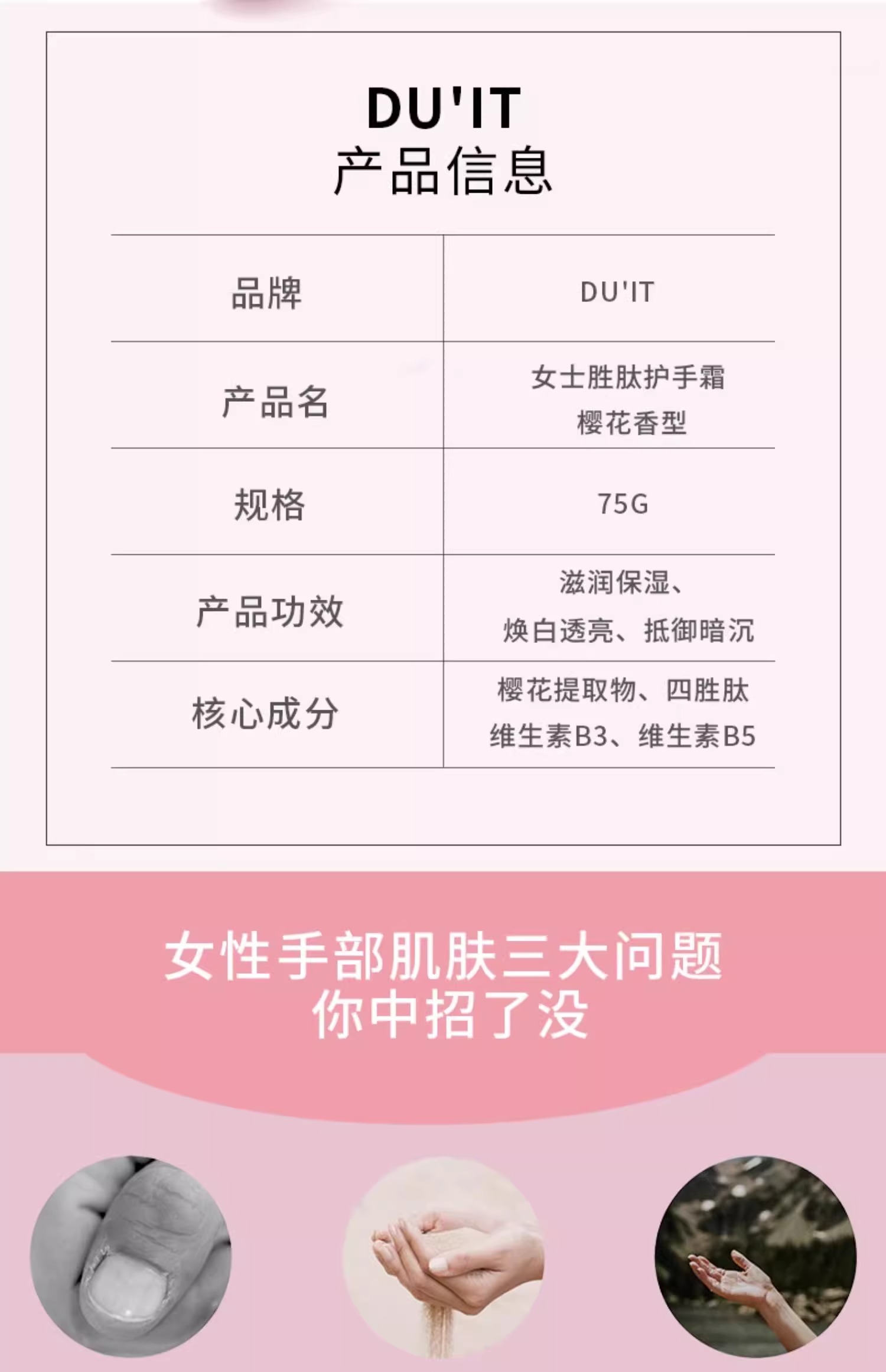 【保税仓】DUIT经典急救手膜、女士胜肽手膜绿茶香型樱花香型30g、75g