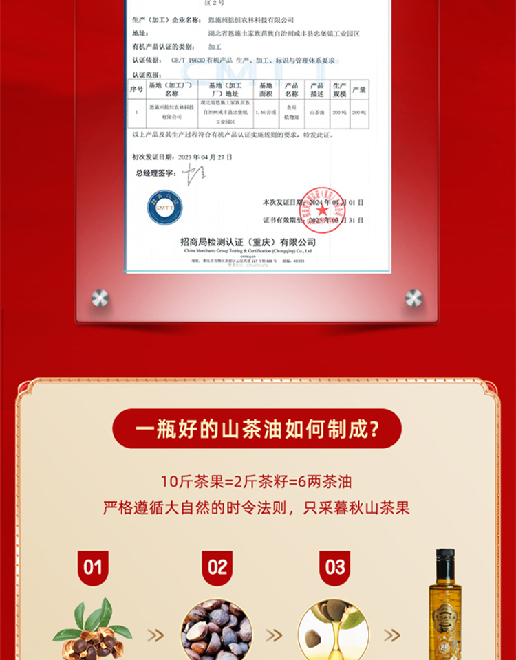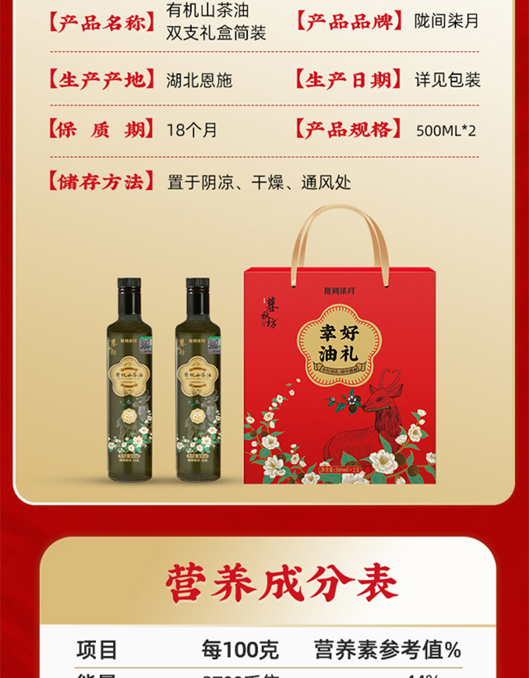 幸好油礼·暮秋坊有机山茶油500ml*2礼盒简装
