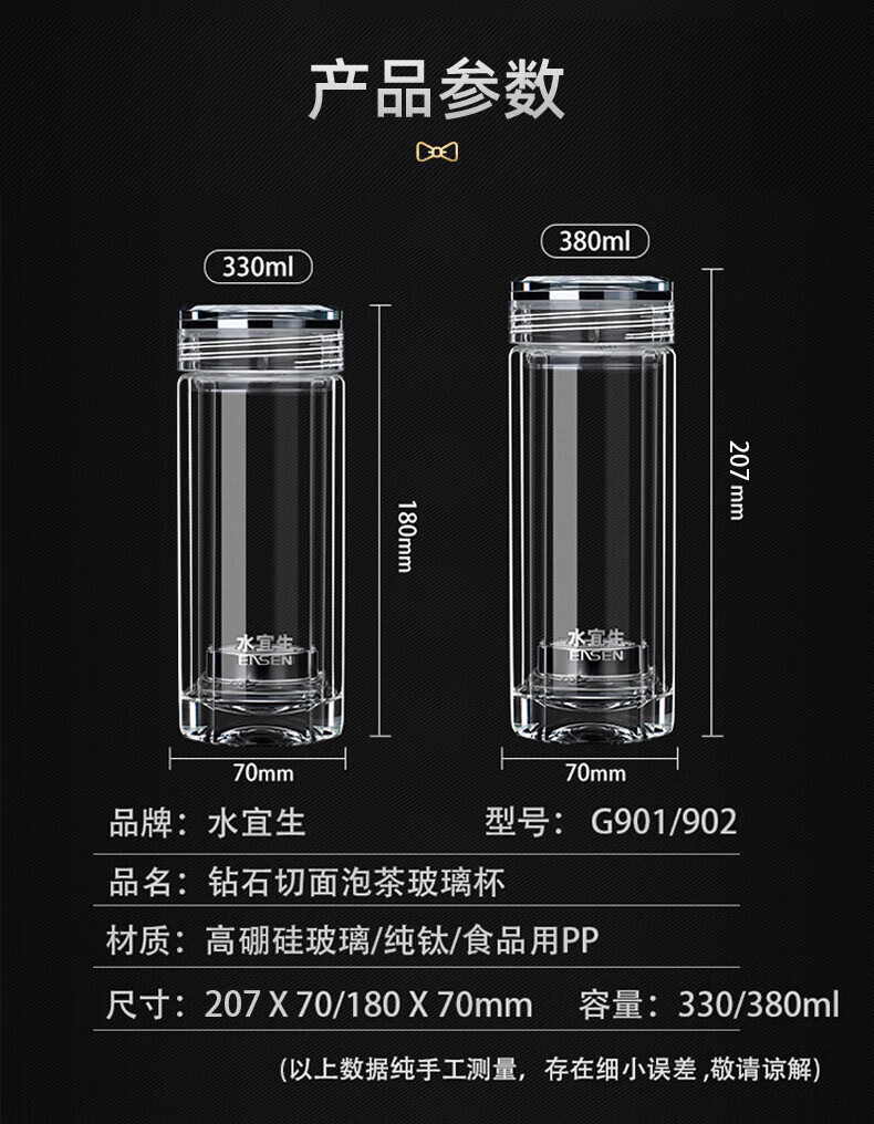 水宜生 双层高档水晶玻璃杯G902 330ML